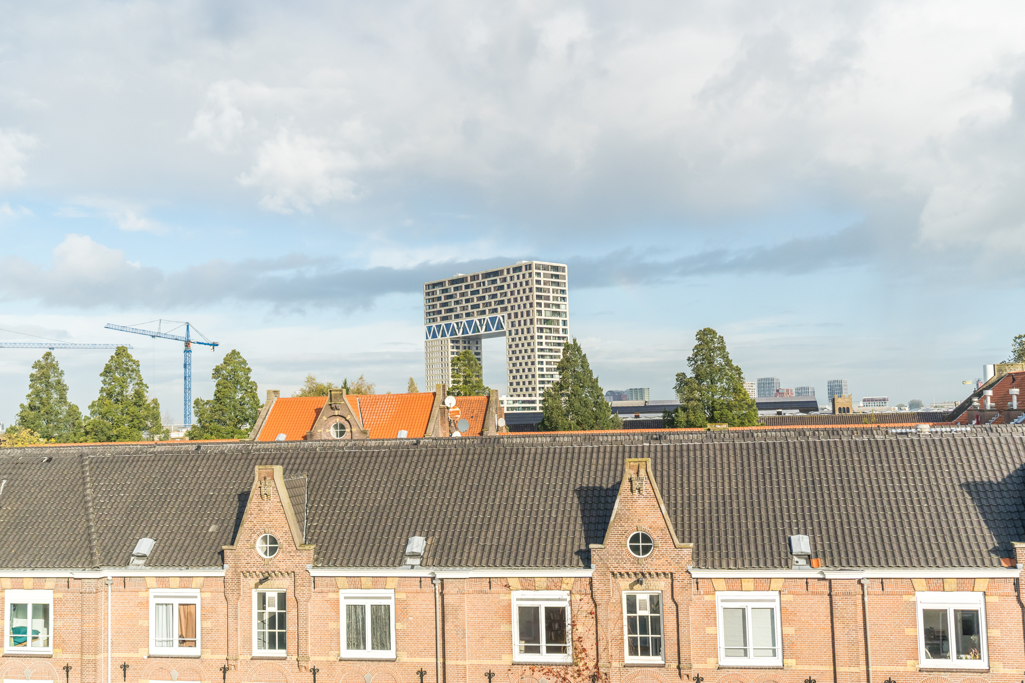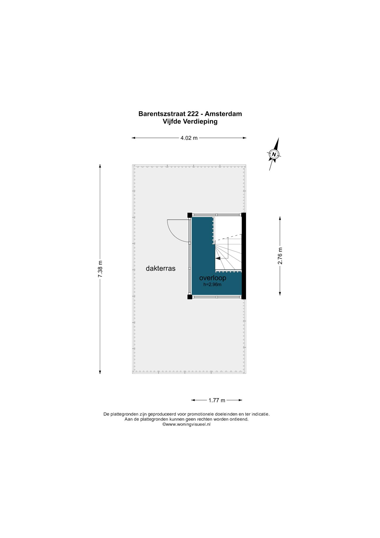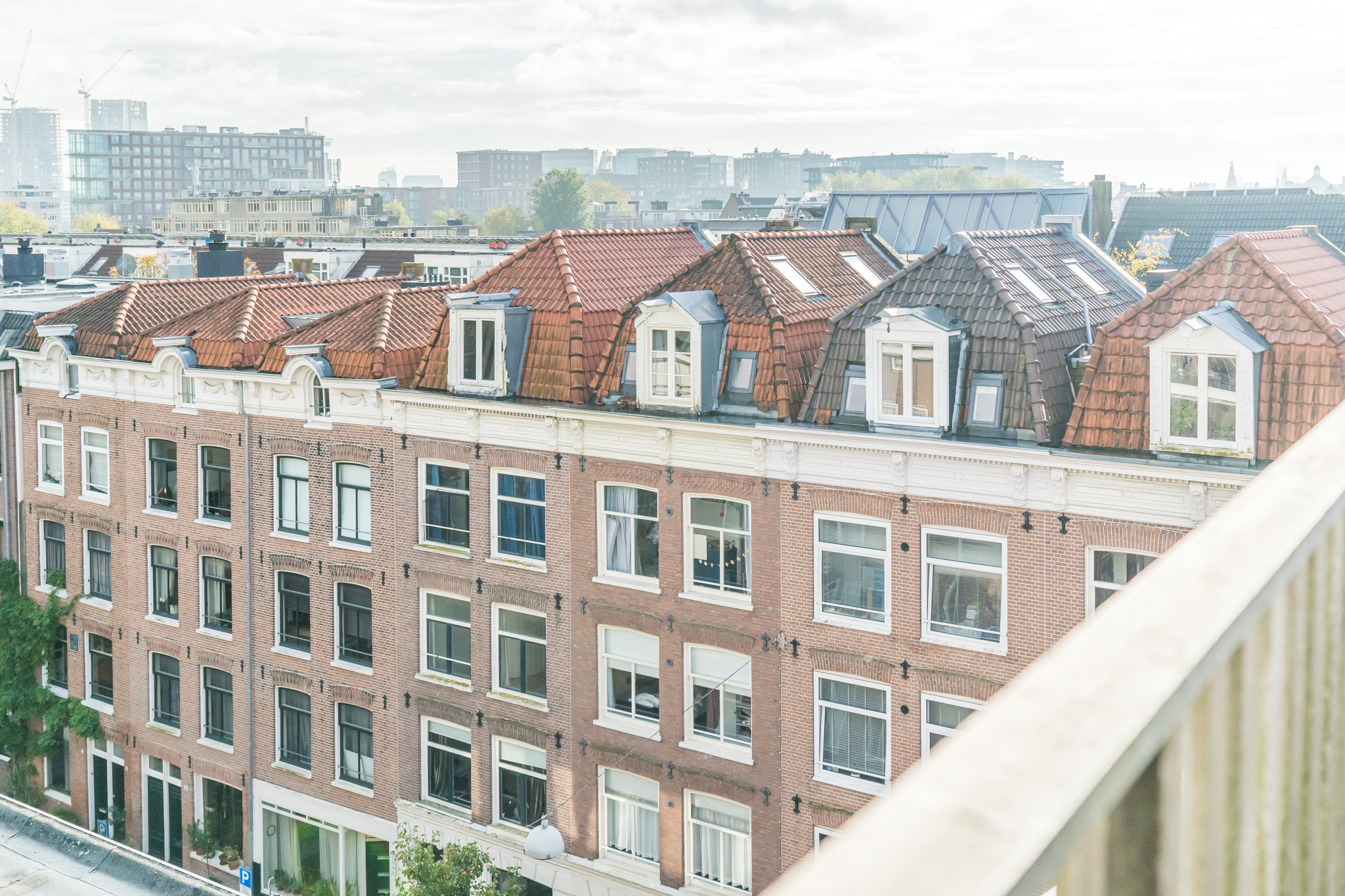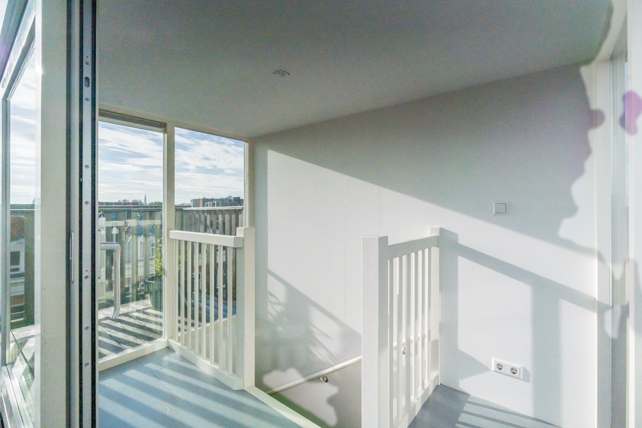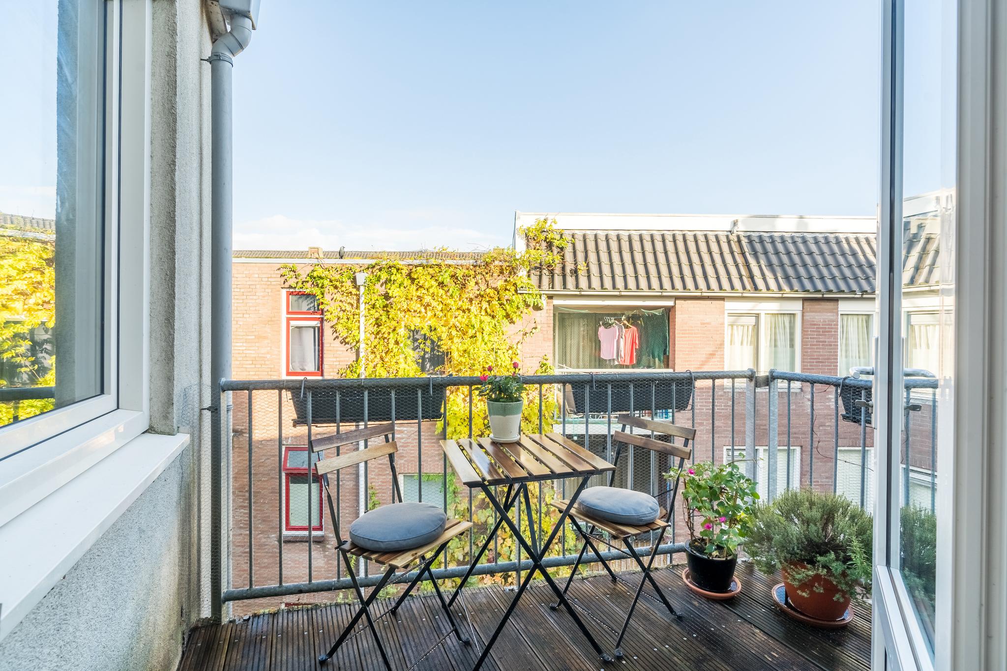 Tenslotte leidt de vaste trap je naar de opbouw (1,96 m stahoogte) op het dak met ruimte voor een ijskastje om bier en wijn in te koelen voor borrels op het ruime dakterras. Het terras is het enige terras op het blok, dus geen nieuwsgierige buren. Daarbij is er uiteraard altijd zon op het terras en doen groene vingers het er dankbaar goed.