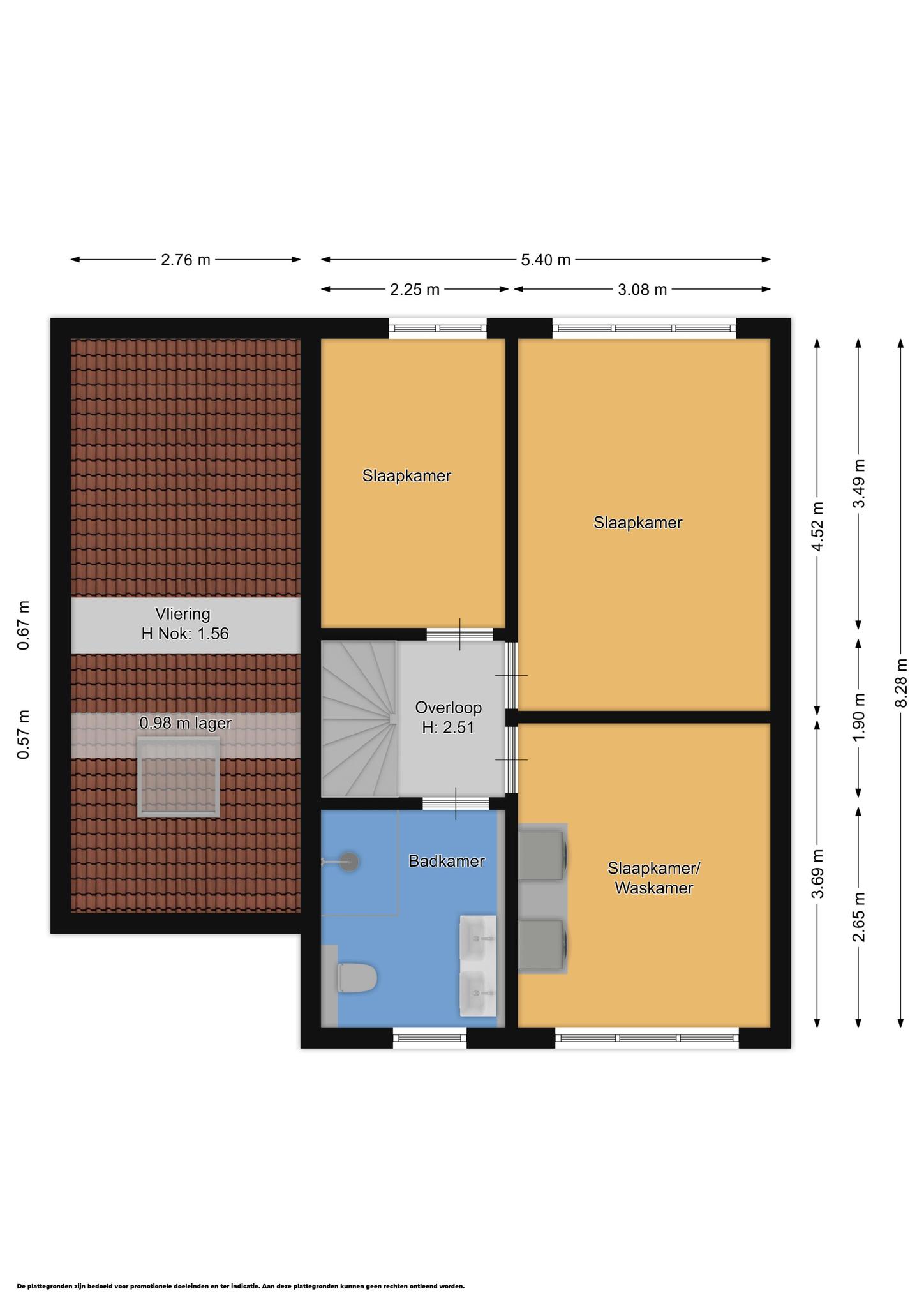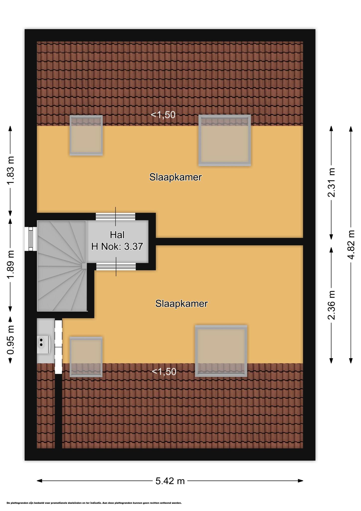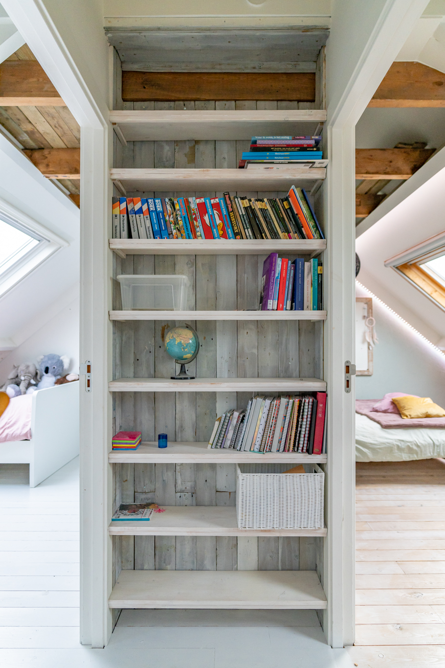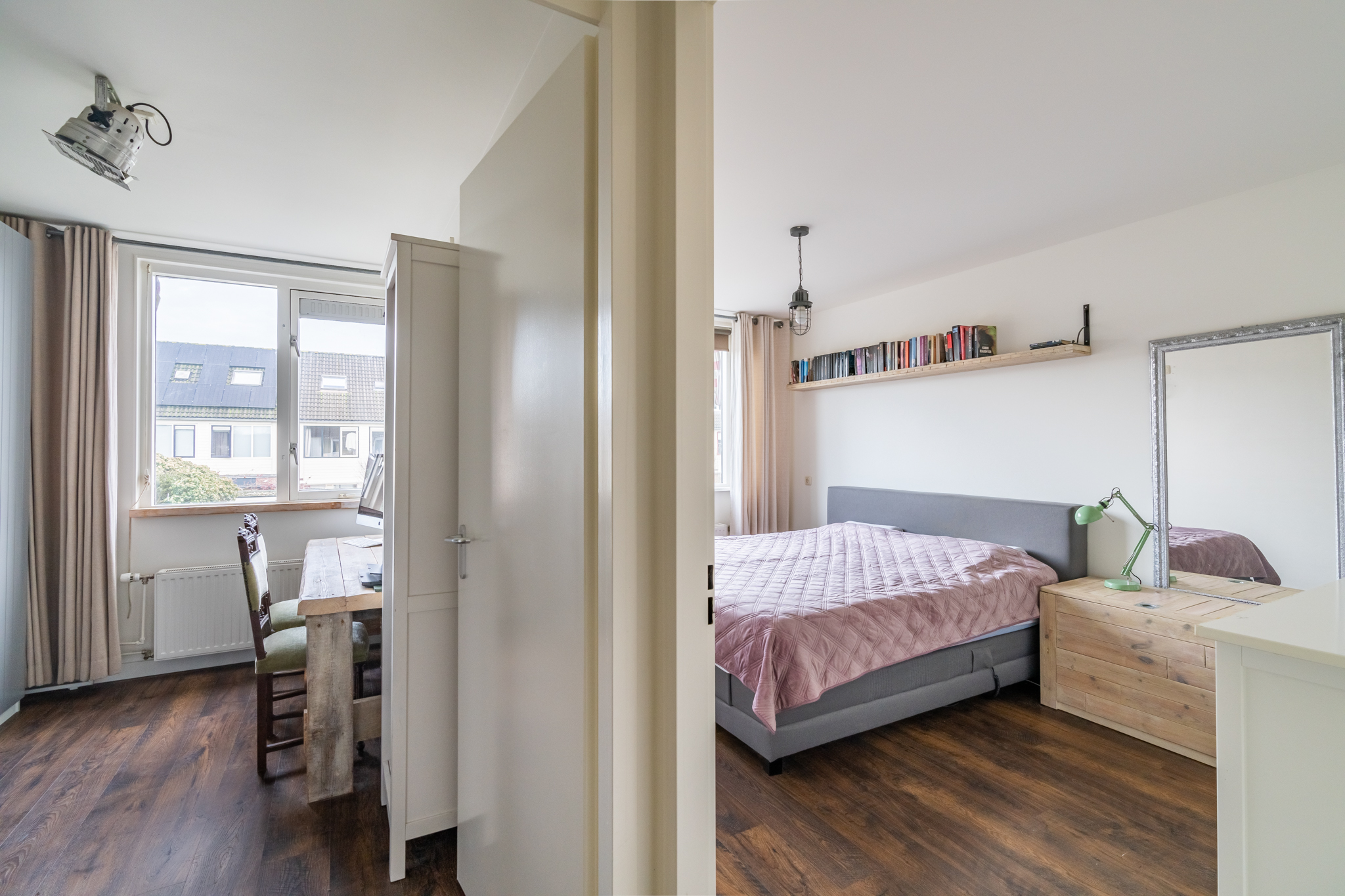 Overloop, 4e slaapkamer met vaste kast en Velux dakraam aan de voorzijde, 5e slaapkamer eveneens met dakraam en vaste kast aan de tuinzijde.