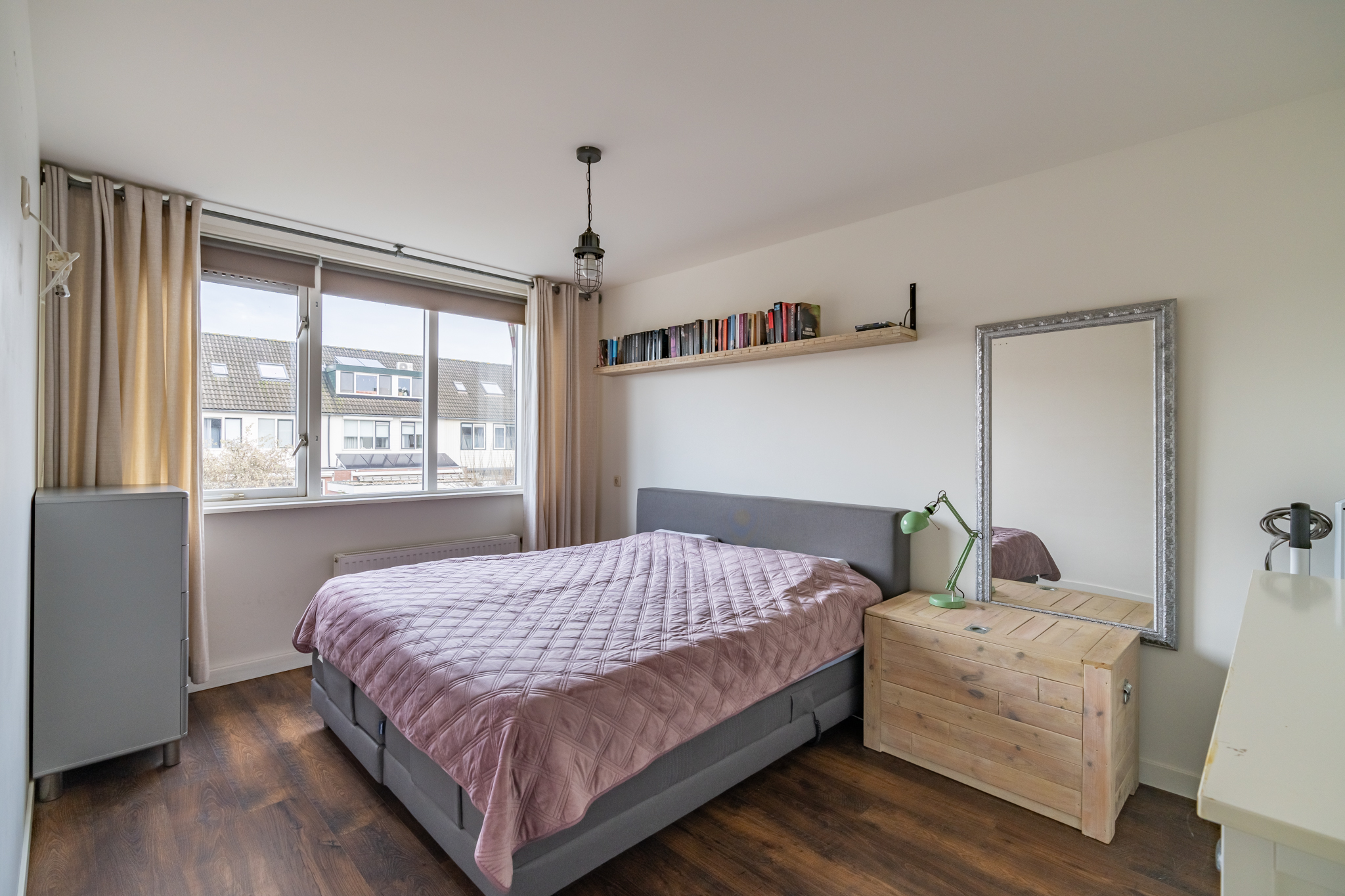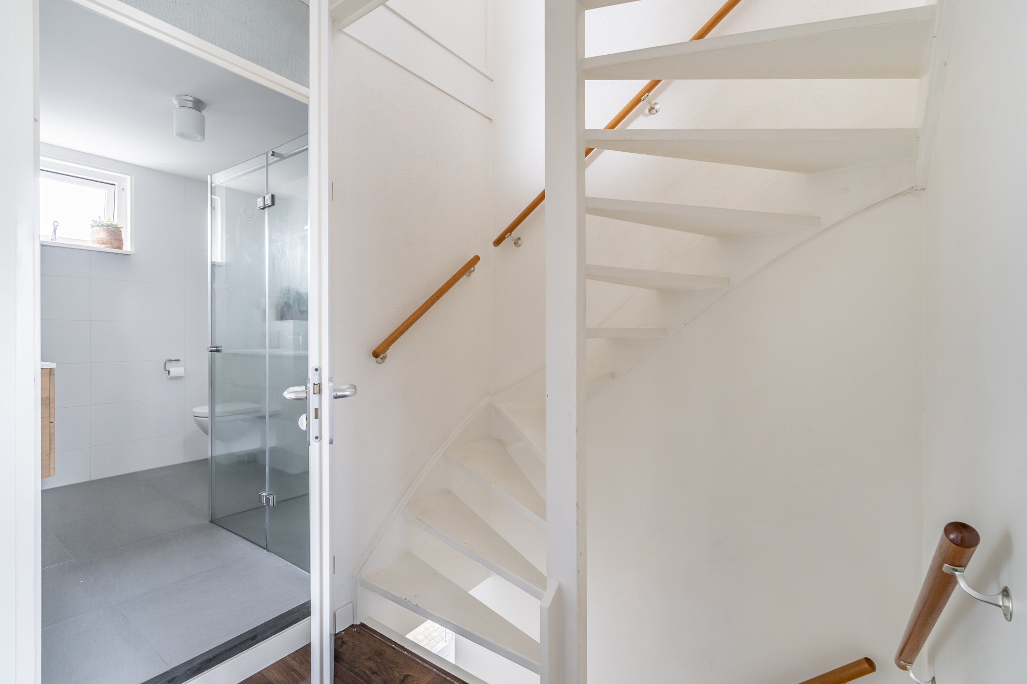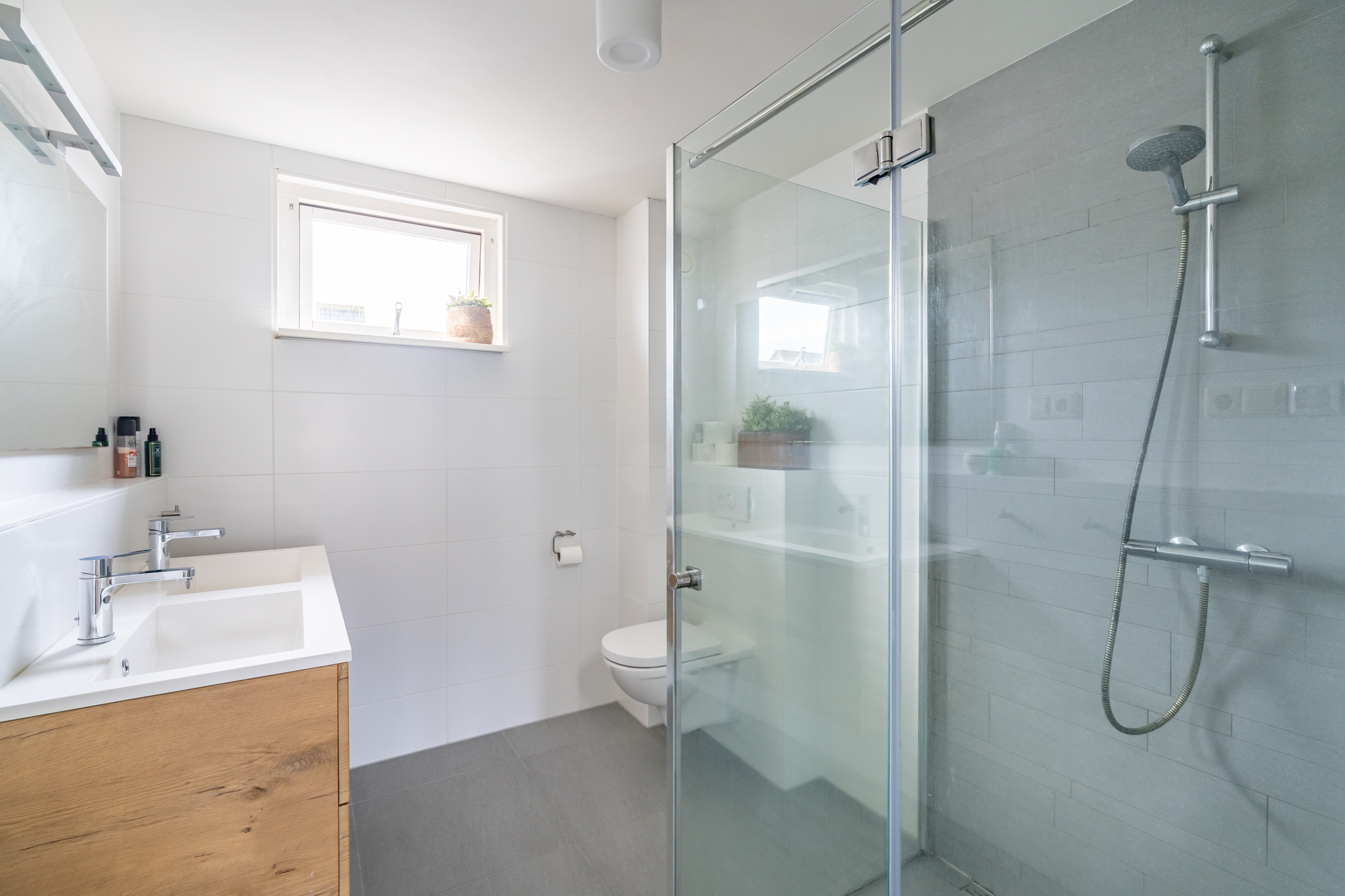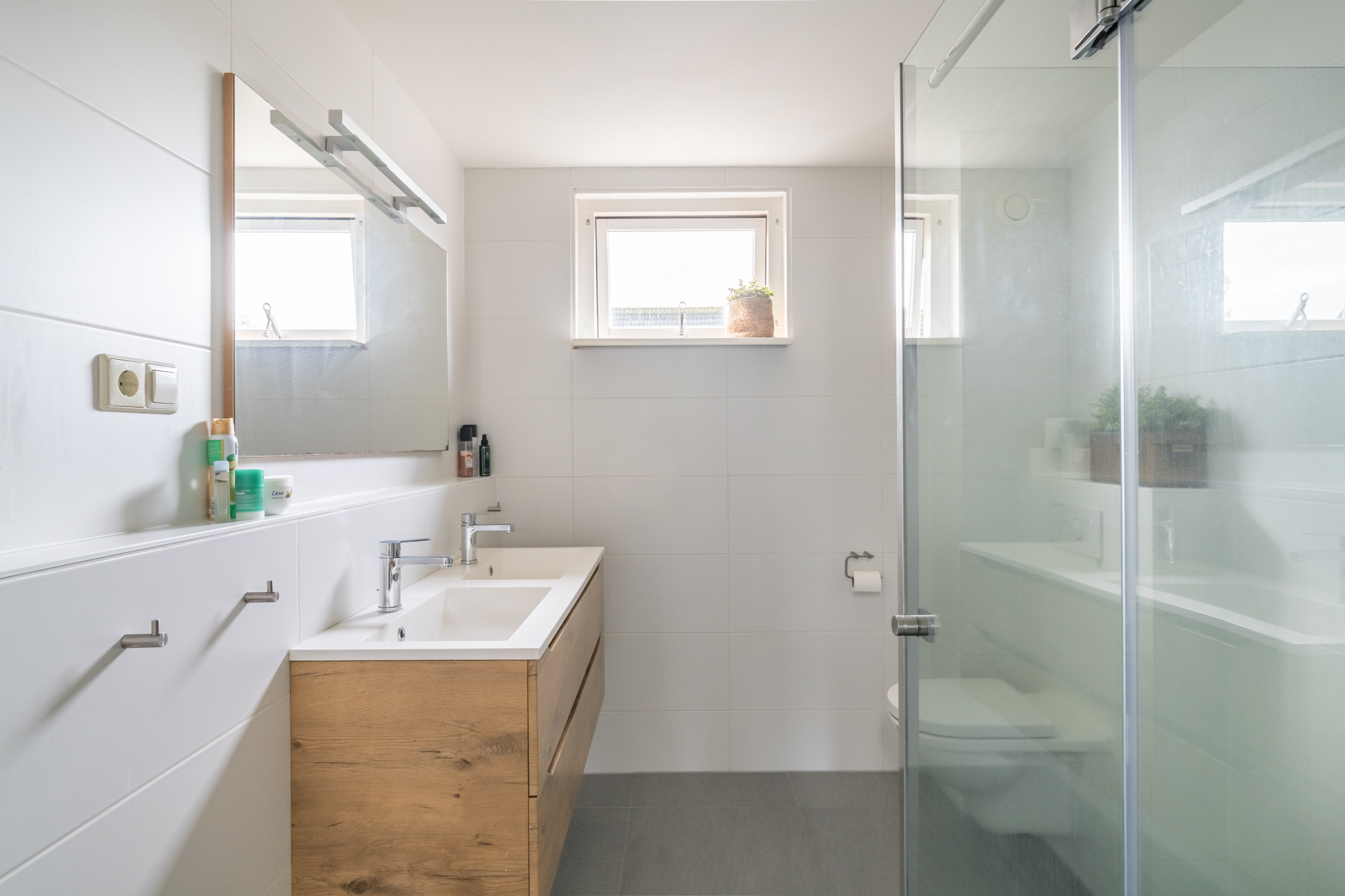 Overloop, luxe badkamer met inloopdouche, dubbel wastafelmeubel, 2e toilet en vloerverwarming, ruime slaapkamer aan de tuinzijde, 2e slaapkamer aan de tuinzijde, 3e slaapkamer aan de voorzijde.