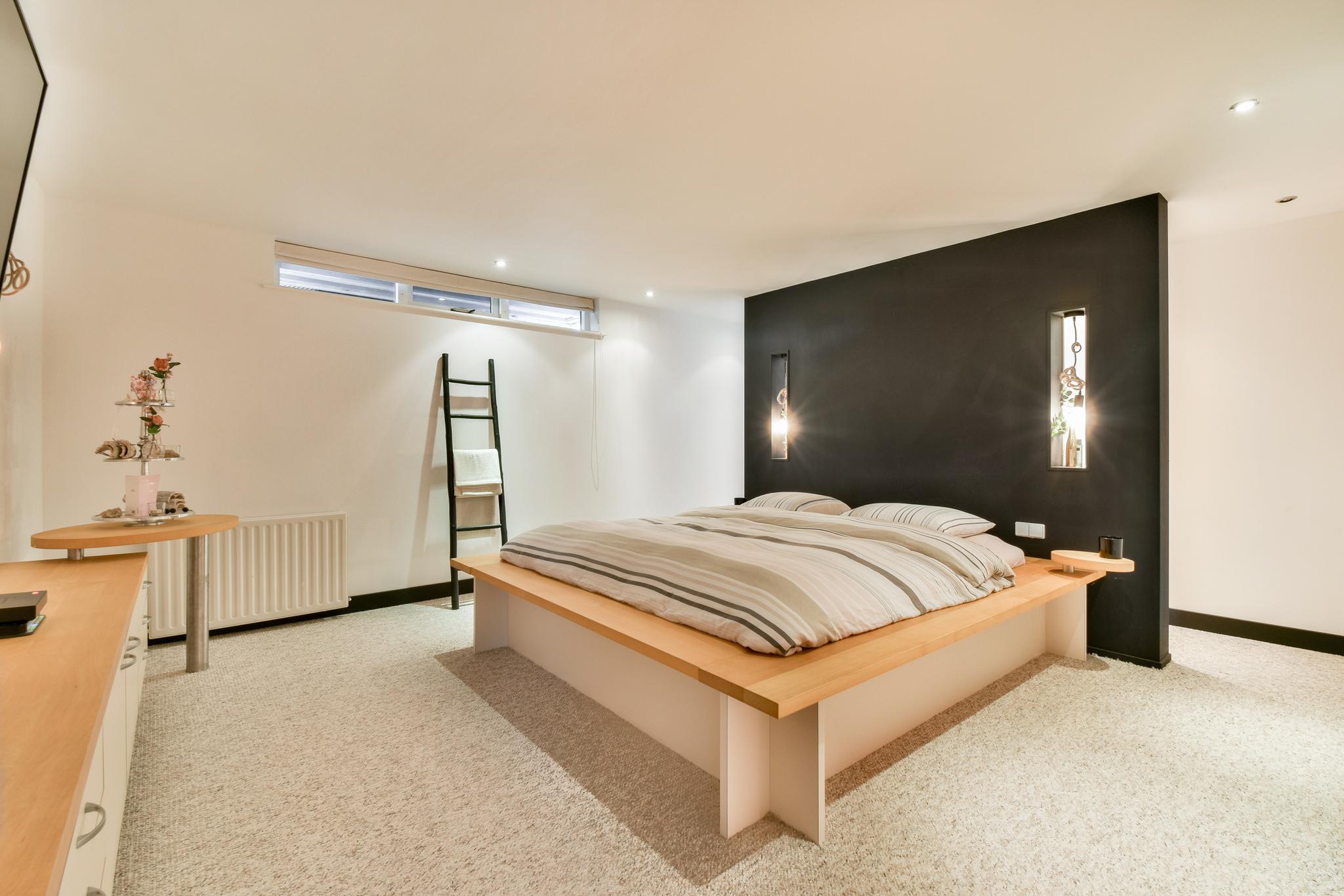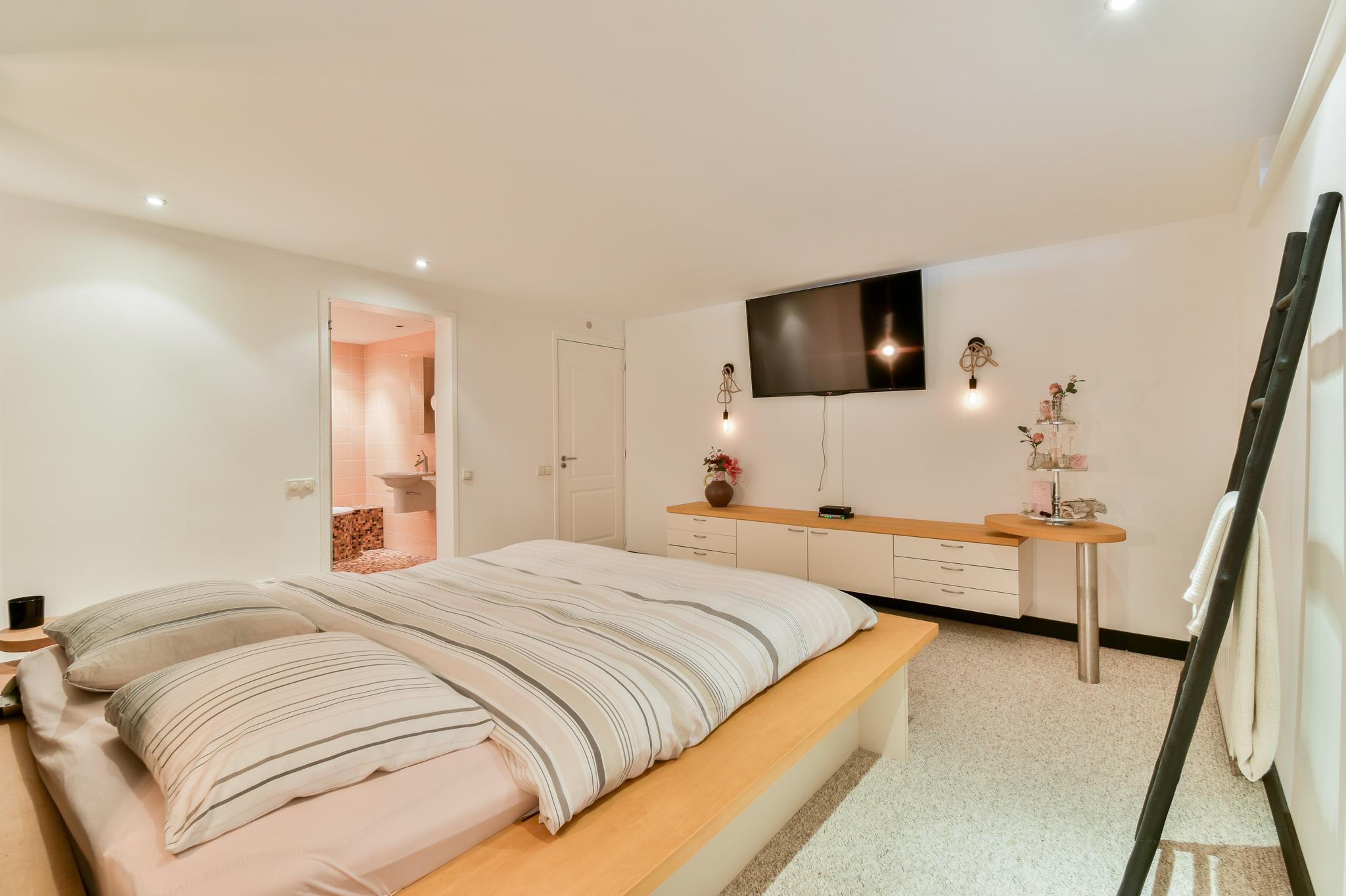 De master-bedroom van circa 35 m² heeft een luxe en-suite badkamer met ligbad (bubbelbad), douche, toilet en twee wastafels. Deze ruim bemeten slaapkamer beschikt ook over een walk-in closet en een kleine, aparte werkruimte.