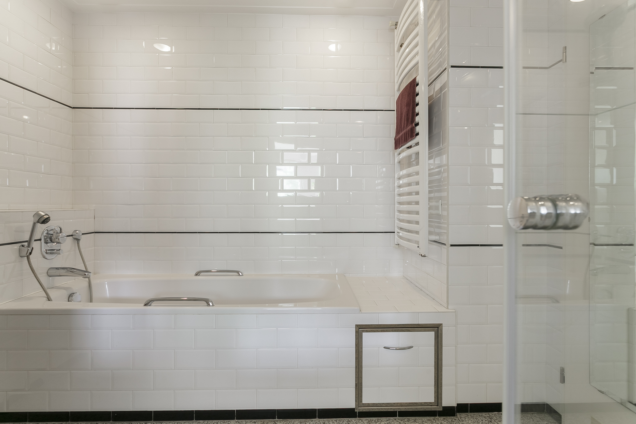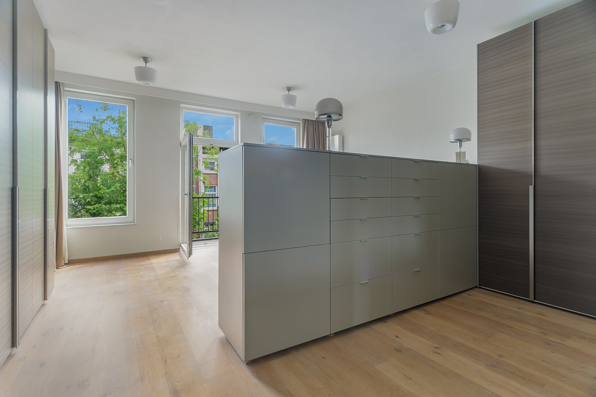 Een vaste trap leidt naar de derde etage, waar zich twee ruime slaap-/werkkamers en een luxe badkamer en-suite bevinden. Aan de voorzijde treft u een ruime werkkamer met vaste kasten, originele schouw en opnieuw dat prachtige uitzicht over de gracht. Aan de achterzijde ligt de master bedroom met balkon en directe toegang tot de stijlvolle badkamer, voorzien van een comfortabel ligbad, inloopdouche, wastafelmeubel, handdoekradiator en toilet.