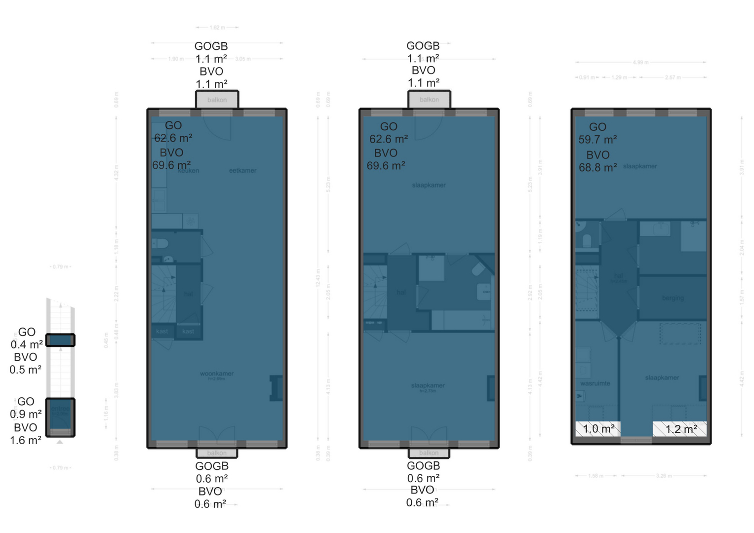 • Driedubbel bovenhuis van ca. 186 m²