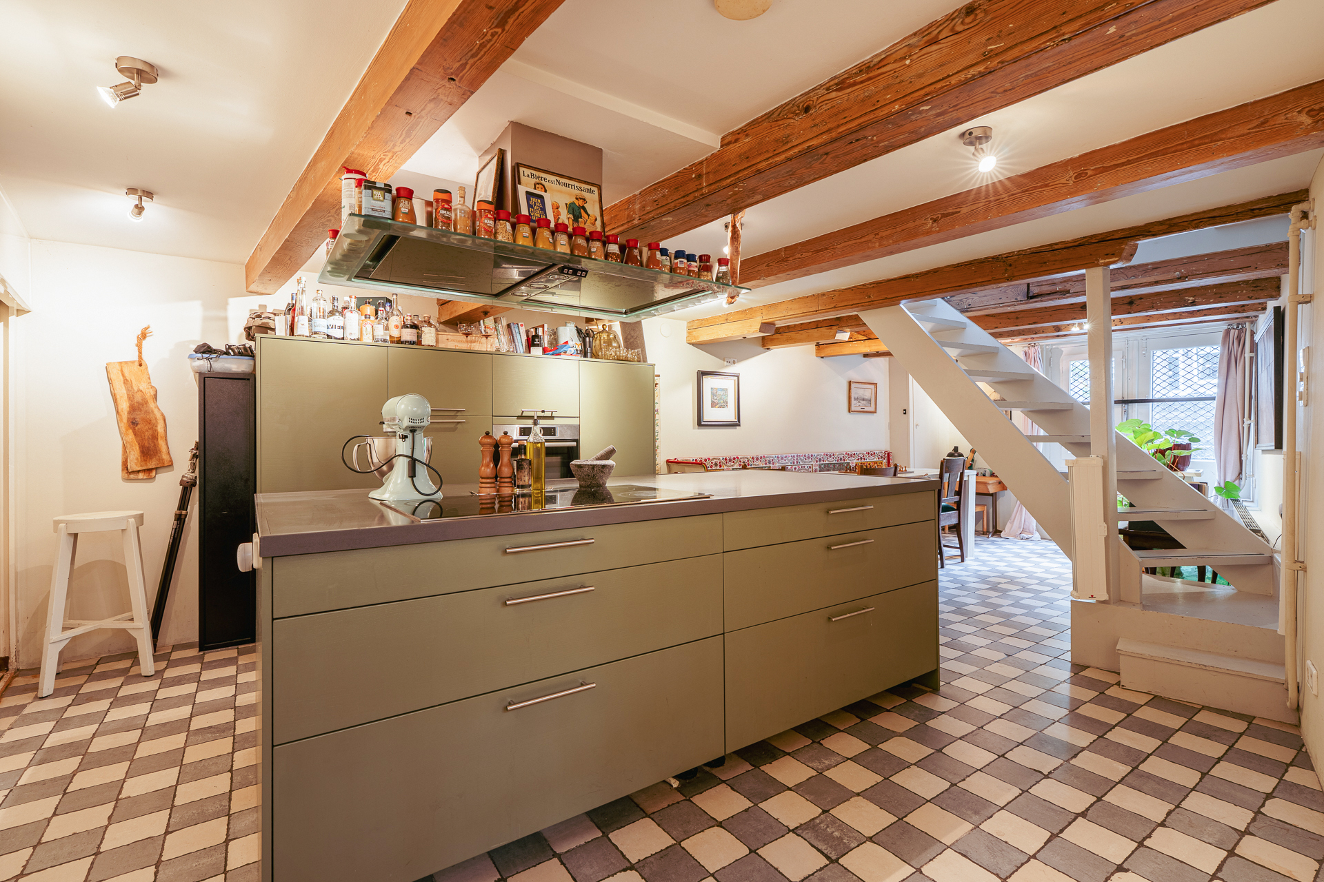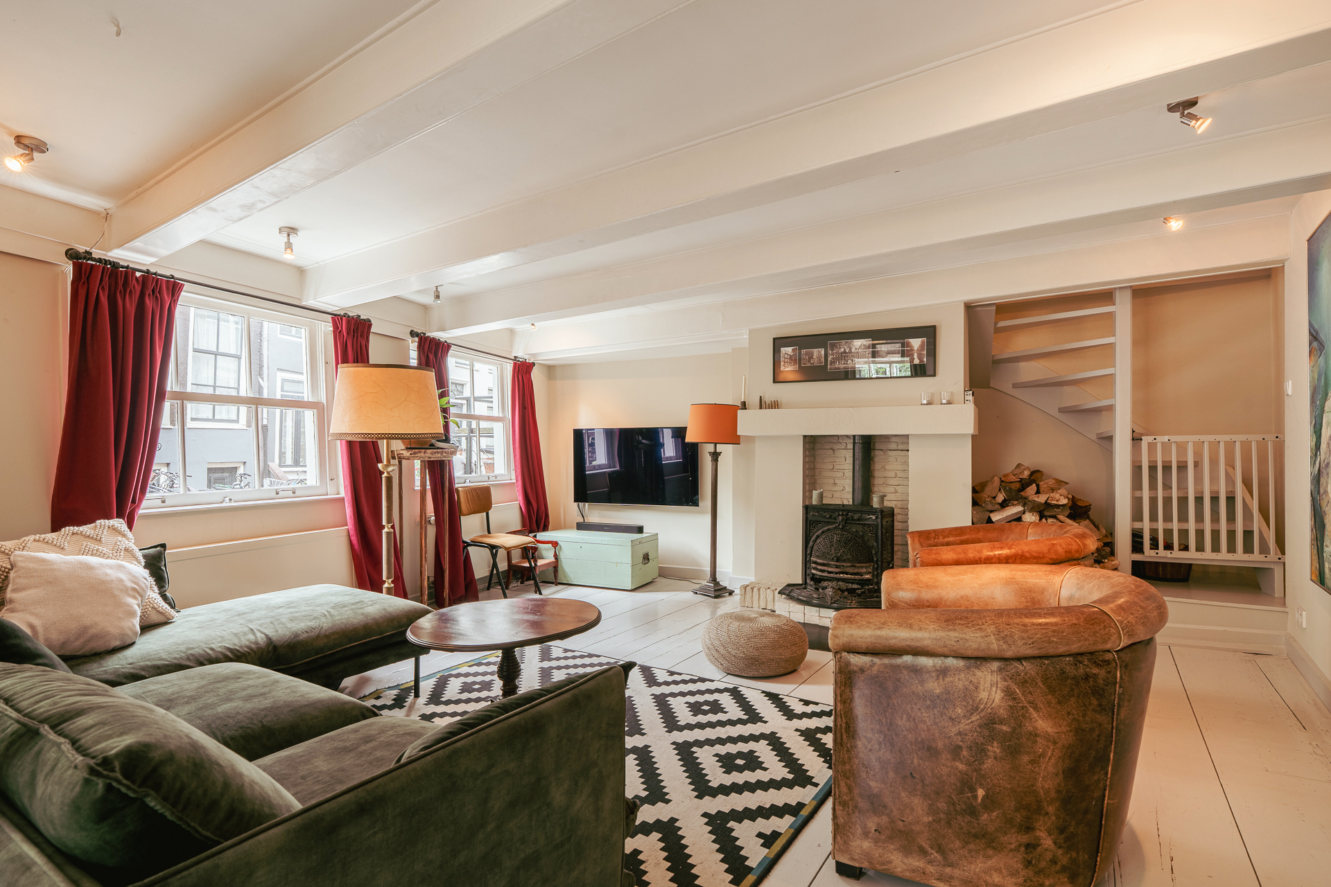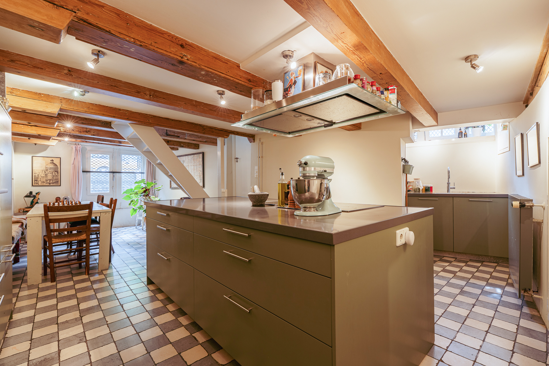 De entree vanaf zowel de Leidsegracht als de Kerkstraat brengt ons via een bordestrap naar de beletage van dit karakteristieke pand. In deze bouwtijd werd dit gedaan om een gebouw een chique uitstraling te geven. Hier treft u de sfeervolle woonkamer, met veel raampartijen die een mooi uitzicht over de gracht geven en daarnaast deze etage voorzien van een fijne lichtinval. Centraal in deze ruimte is de trap naar het souterrain gesitueerd die tevens een open scheiding in de ruimte aanbrengt.