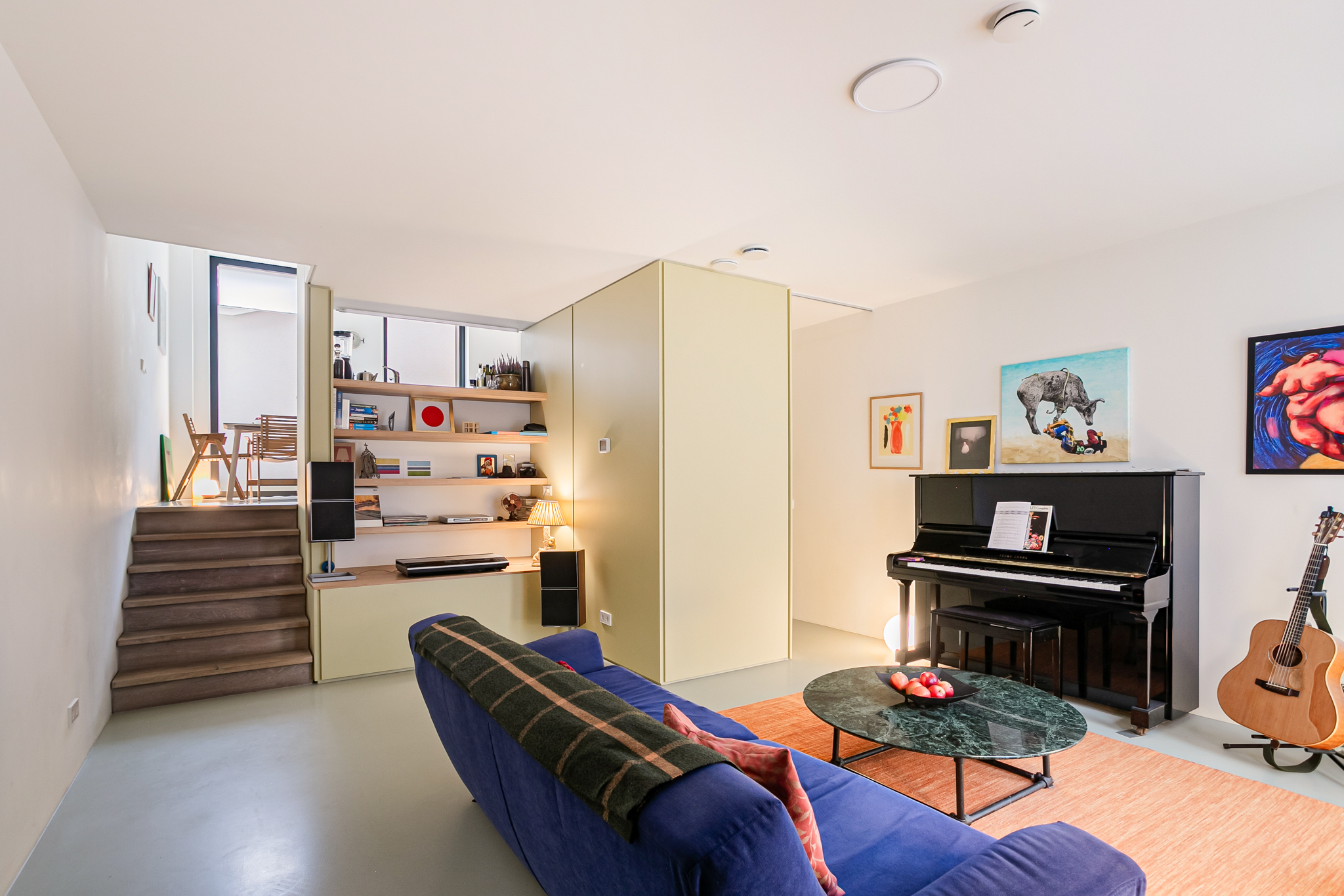Door de split-levelopzet worden de ruimtes in het huis optimaal benut. Op de begane grond bevindt zich de sfeervolle woonkamer met een korte trap naar het souterrain, welke voorzien is van daglicht en uitstekend te gebruiken is als home office, atelier of game-room. Tevens is de begane grond voorzien van een separaat toilet met fontein. De korte trap omhoog vanaf de begane grond brengt ons naar de stijlvolle RVS-look woonkeuken met een doorkijk naar de woonkamer.