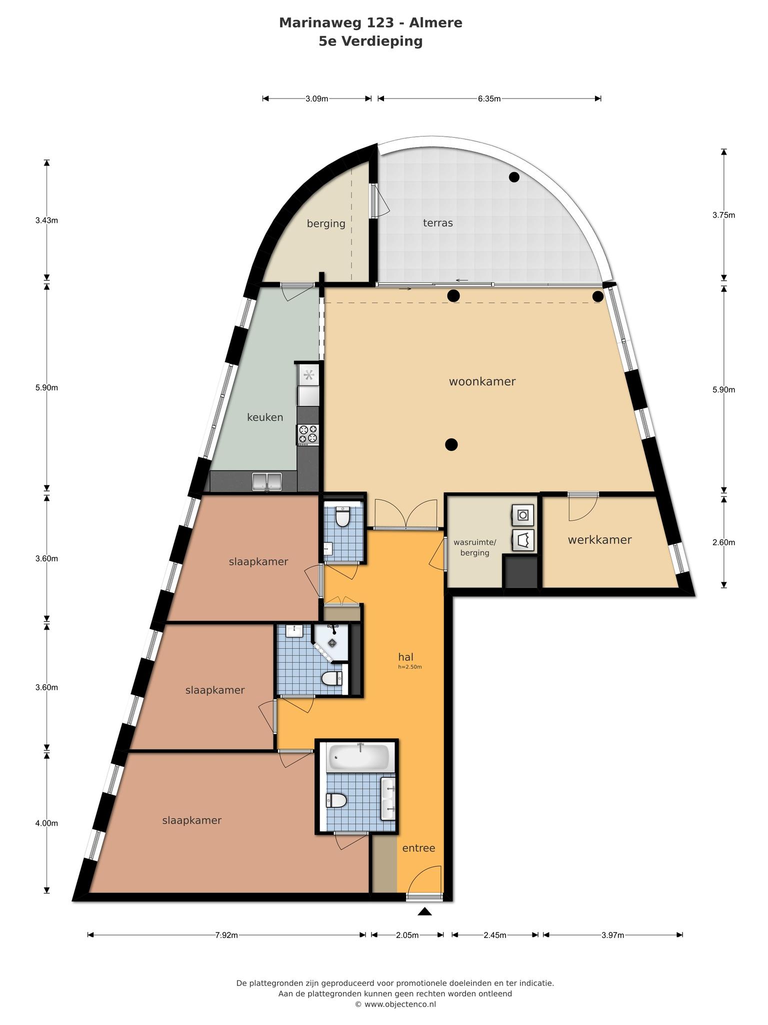 • terras van circa 18,50 m² op het zuiden met vrij uitzicht over de jachthaven