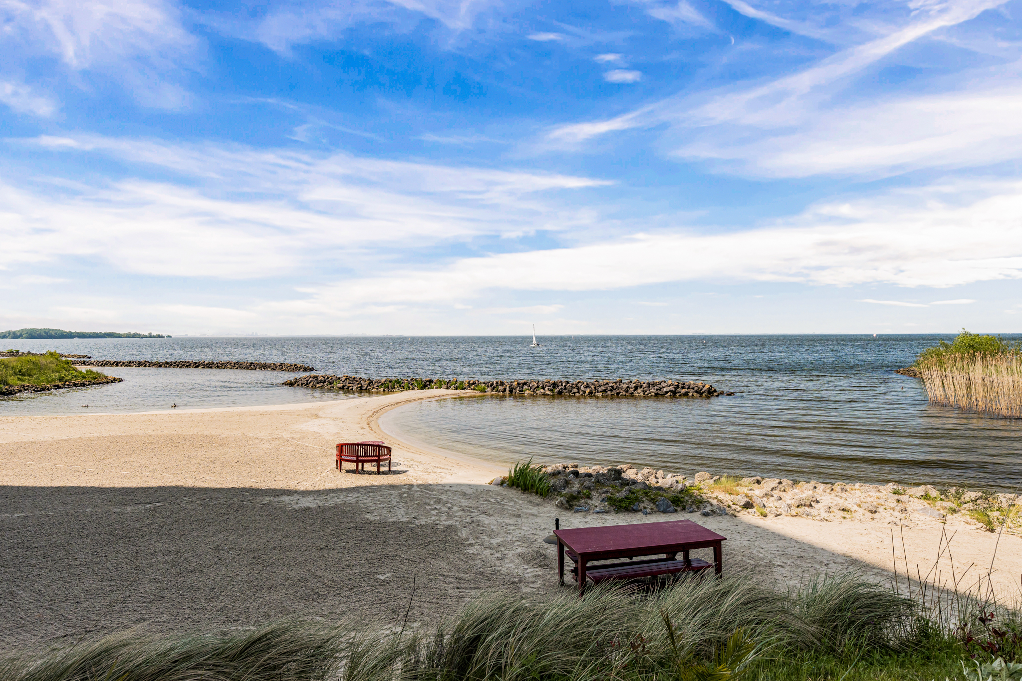 Rondom het gebouw ligt een fraaie tuin, gasten parkeerplaatsen, een afsluitbare boten wijde voor de stalling van kleine bootjes en een uniek privé strand waar het in de zomer heerlijk toeven. Het water is van prima zwem kwaliteit en het strand is voorzien van gemeenschappelijk meubilair.