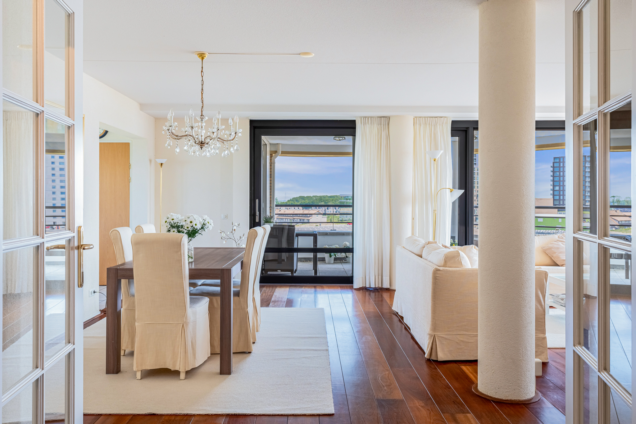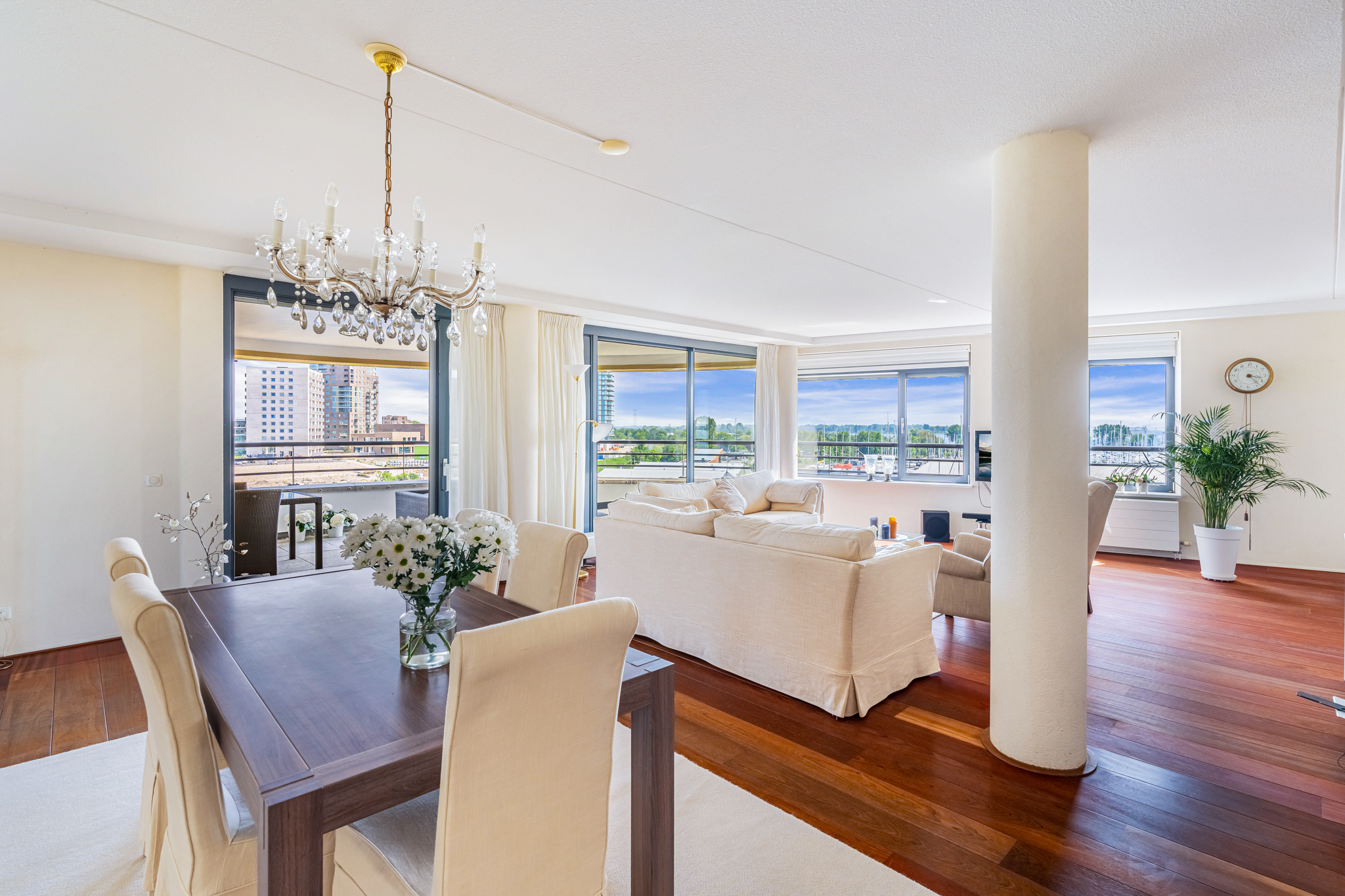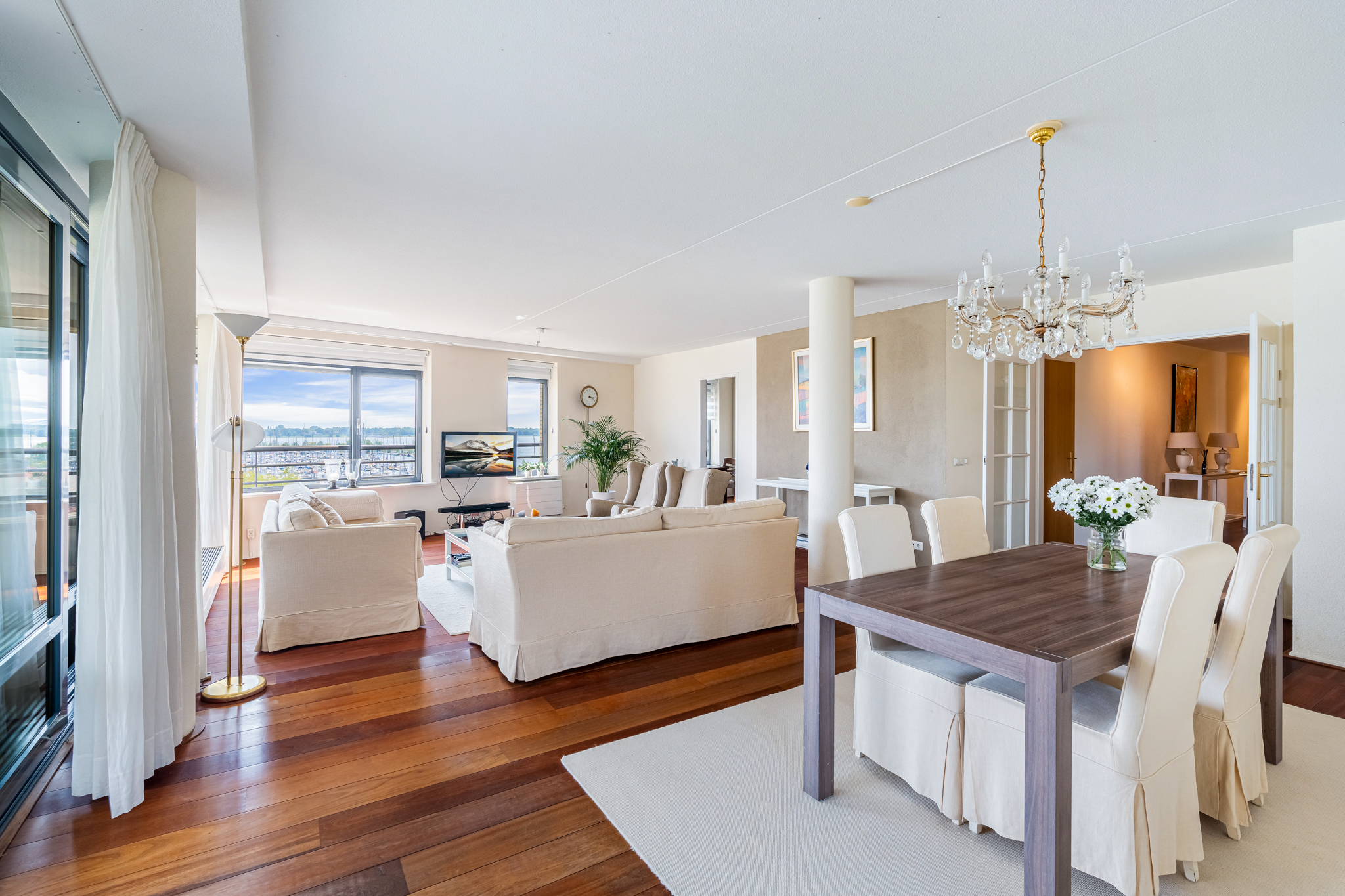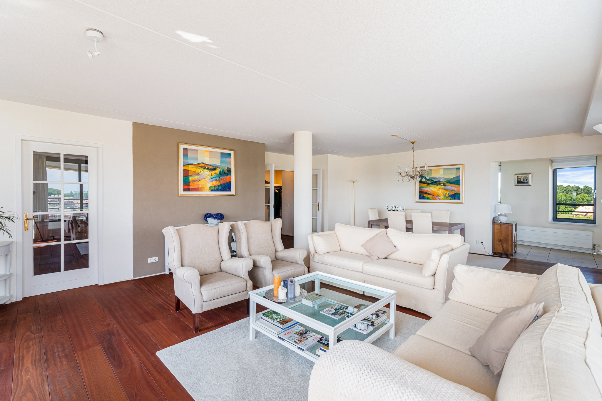 • zeer ruime, lichte, L-vormige living met schuifpui naar terras; met panoramisch uitzicht over de jachthaven
