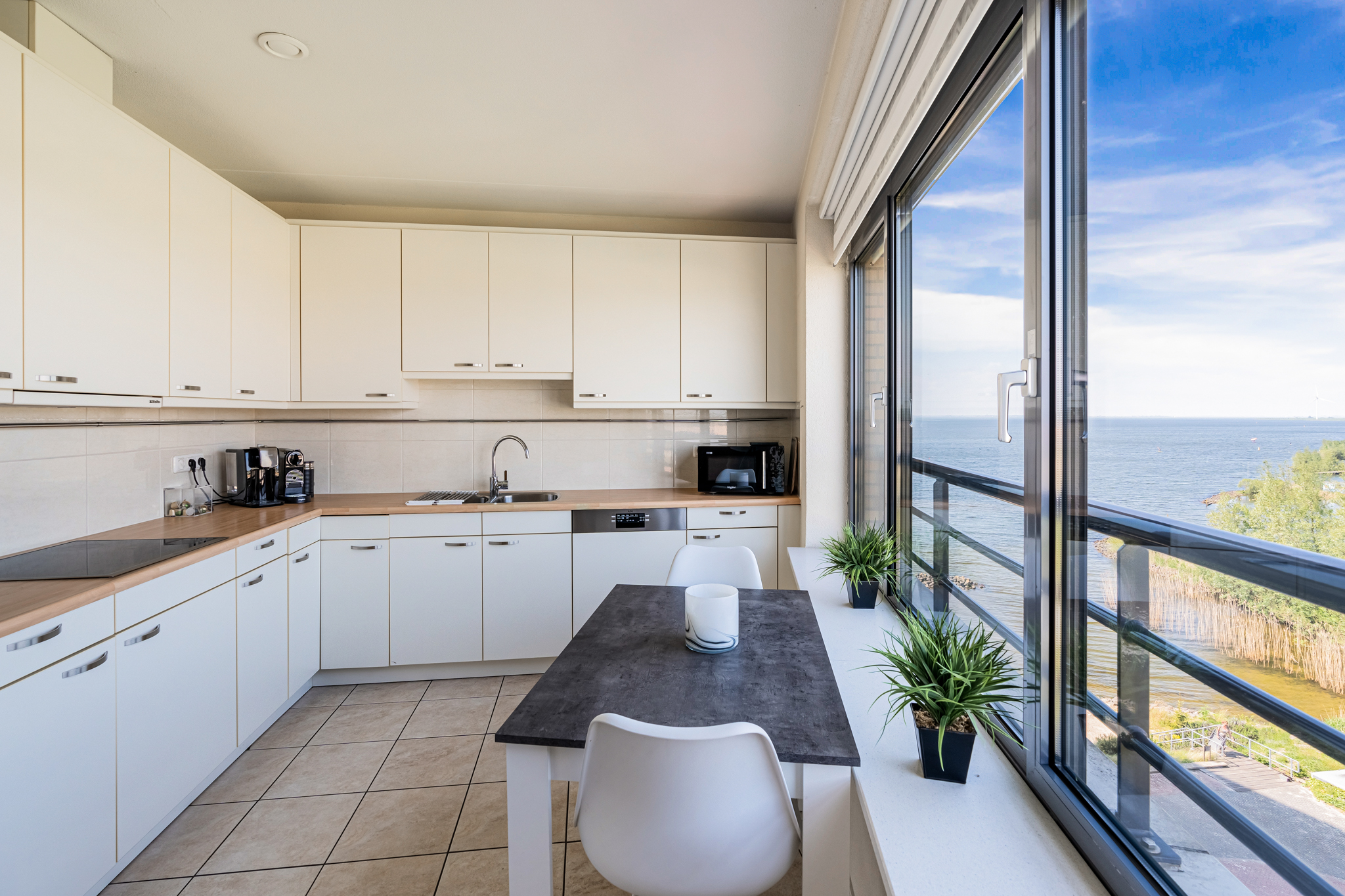 • royale eetkeuken met inbouwapparatuur (Miele) en met uitzicht tot aan Marken en Volendam;