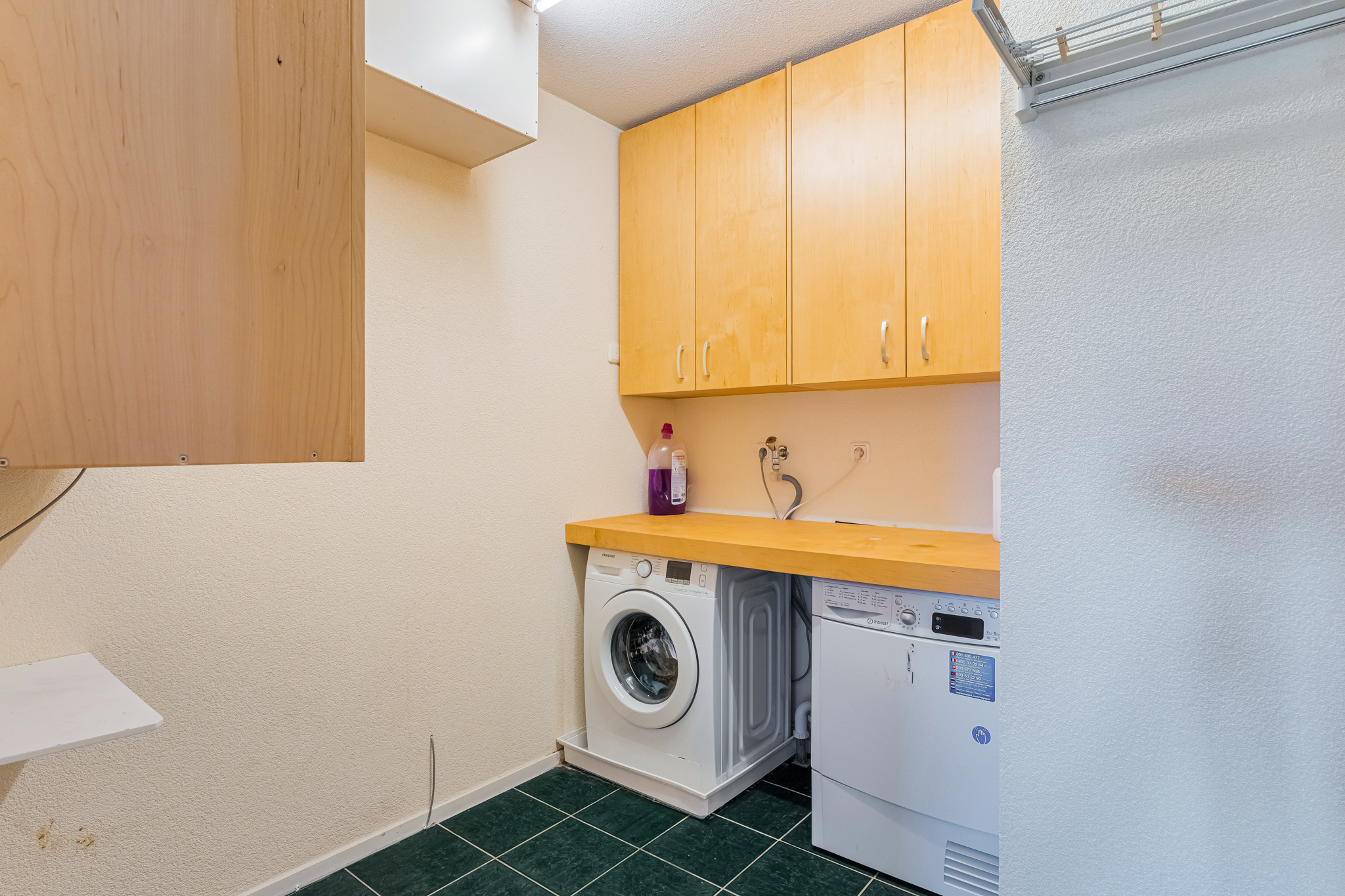 • laundry met aansluiting wasmachine en droger en voorraadruimte;