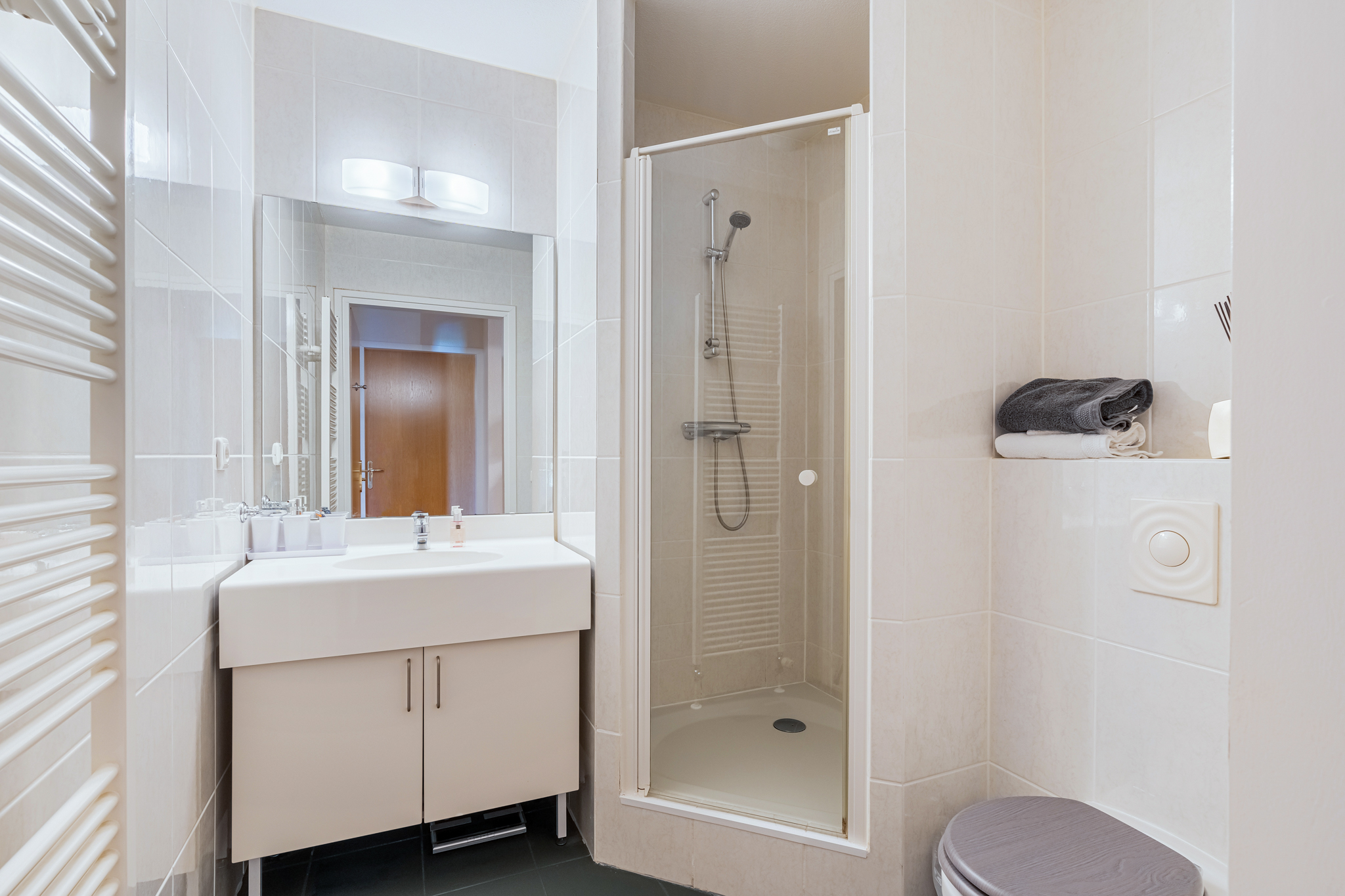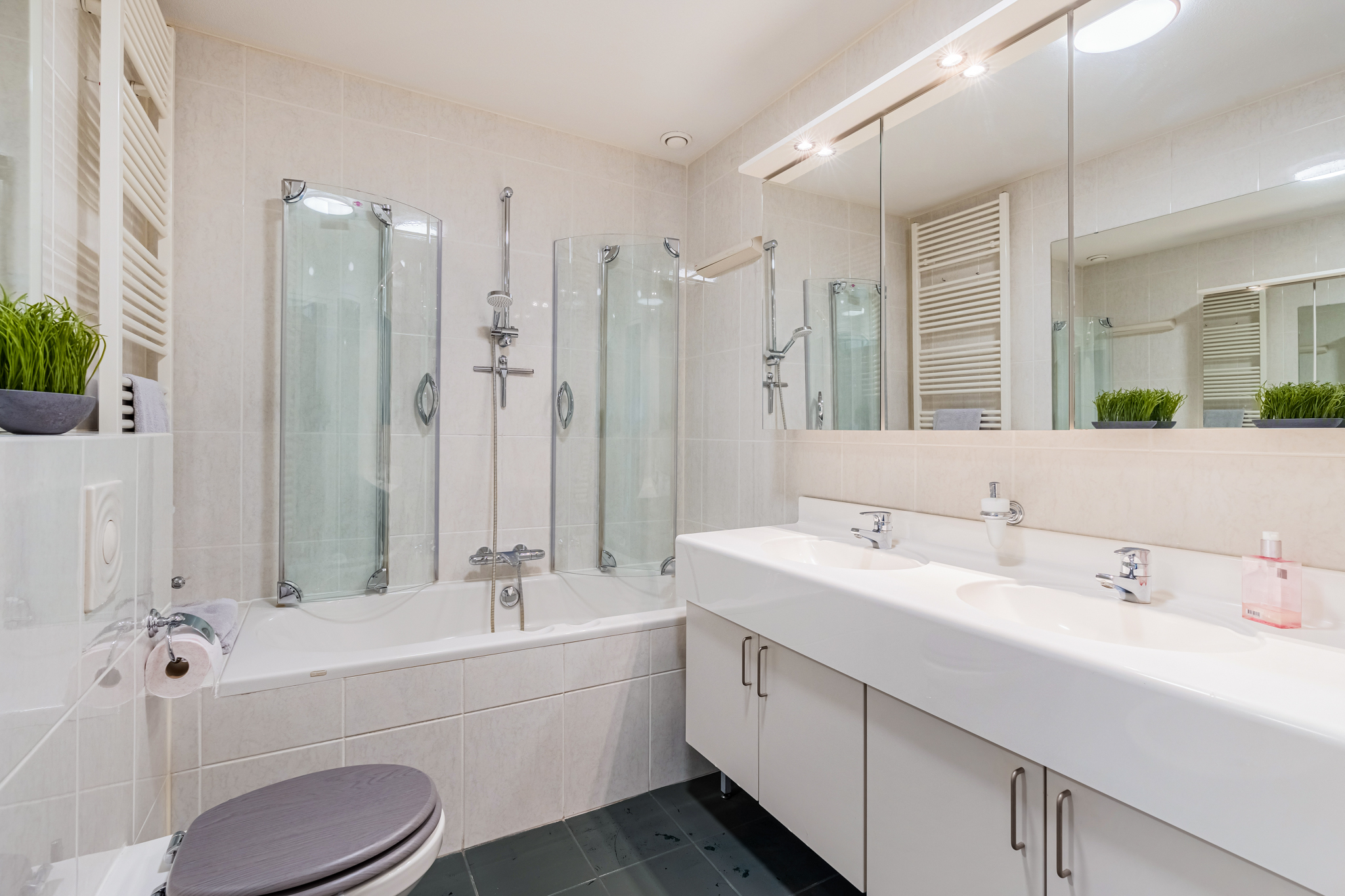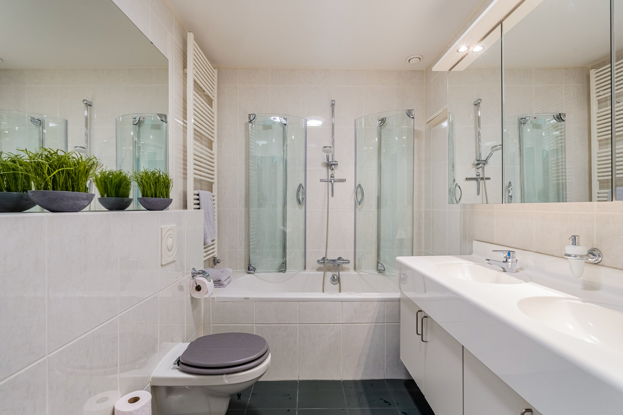 • 2e badkamer met douche, toilet, wastafelmeubel en designradiator;