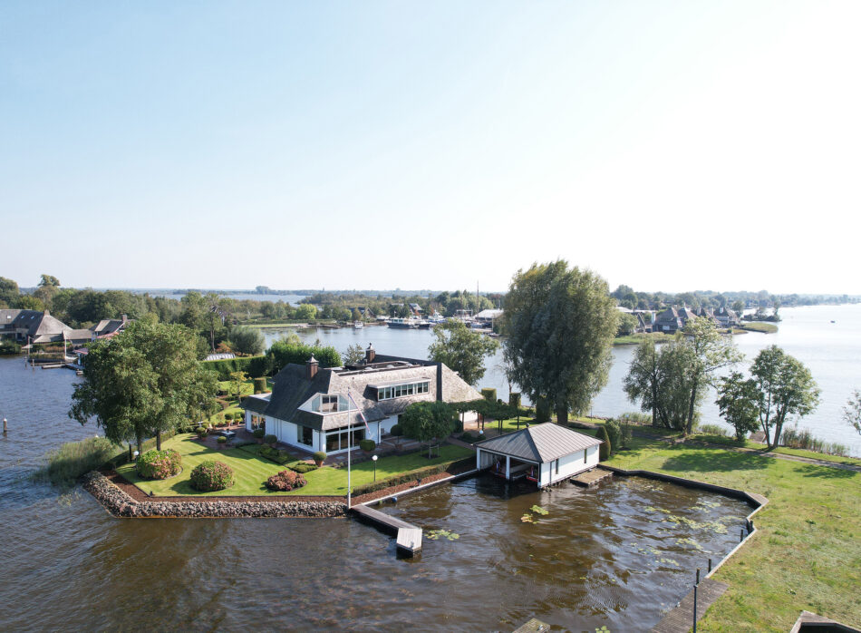 Locatie, locatie, locatie… dit indrukwekkende landhuis (553 m²) compleet met dubbel boothuis is gesitueerd op één van de aller-, àllermooiste locaties van de Loosdrechtse Plassen, internationaal ook wel ‘the Lakes of Amsterdam’ genoemd.