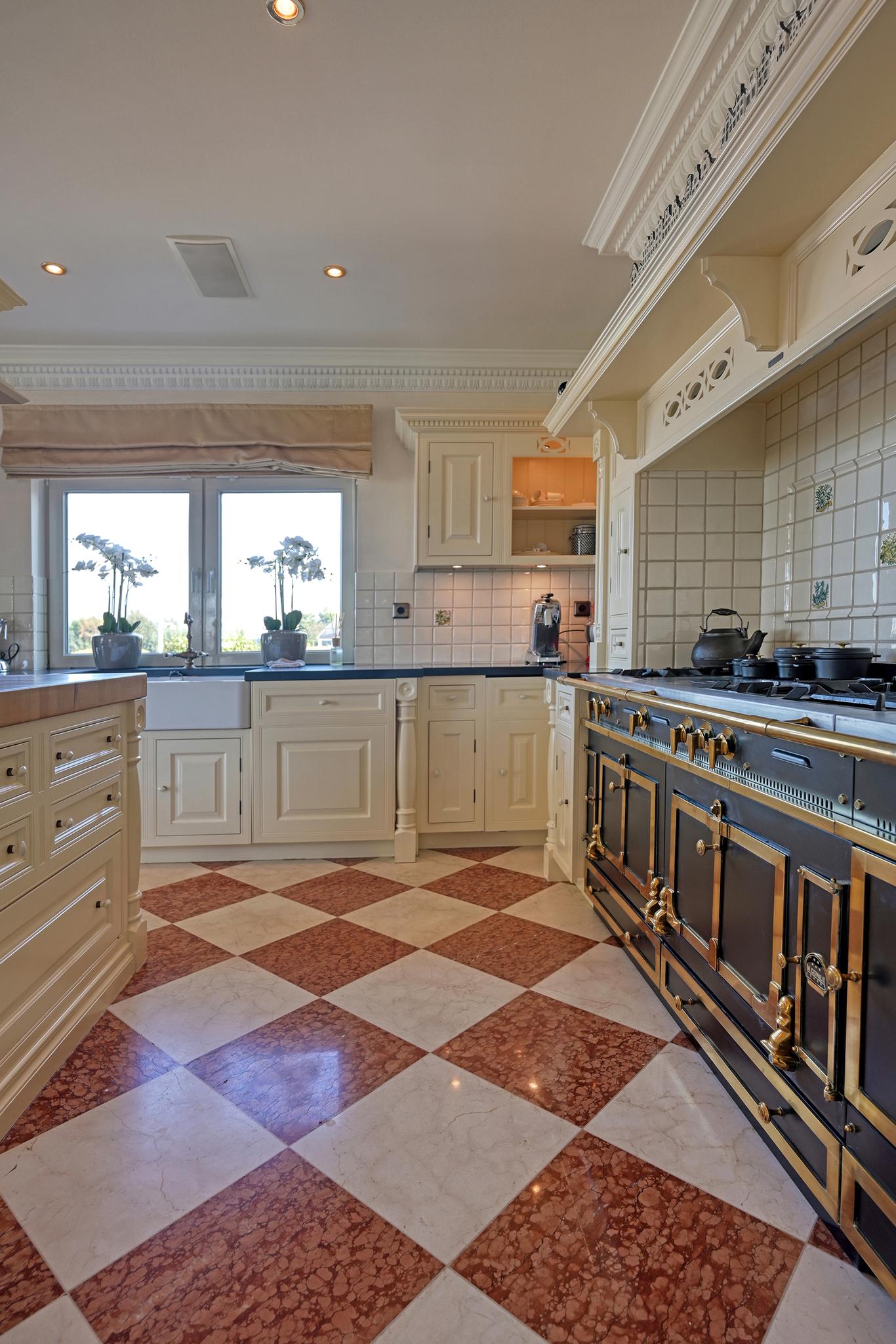 Uiterst riante living (ca. 106 m²), onderverdeeld in woonkamer en woonkeuken voorzien van alle apparatuur waaronder het La Cornue fornuis als ware eye-catcher