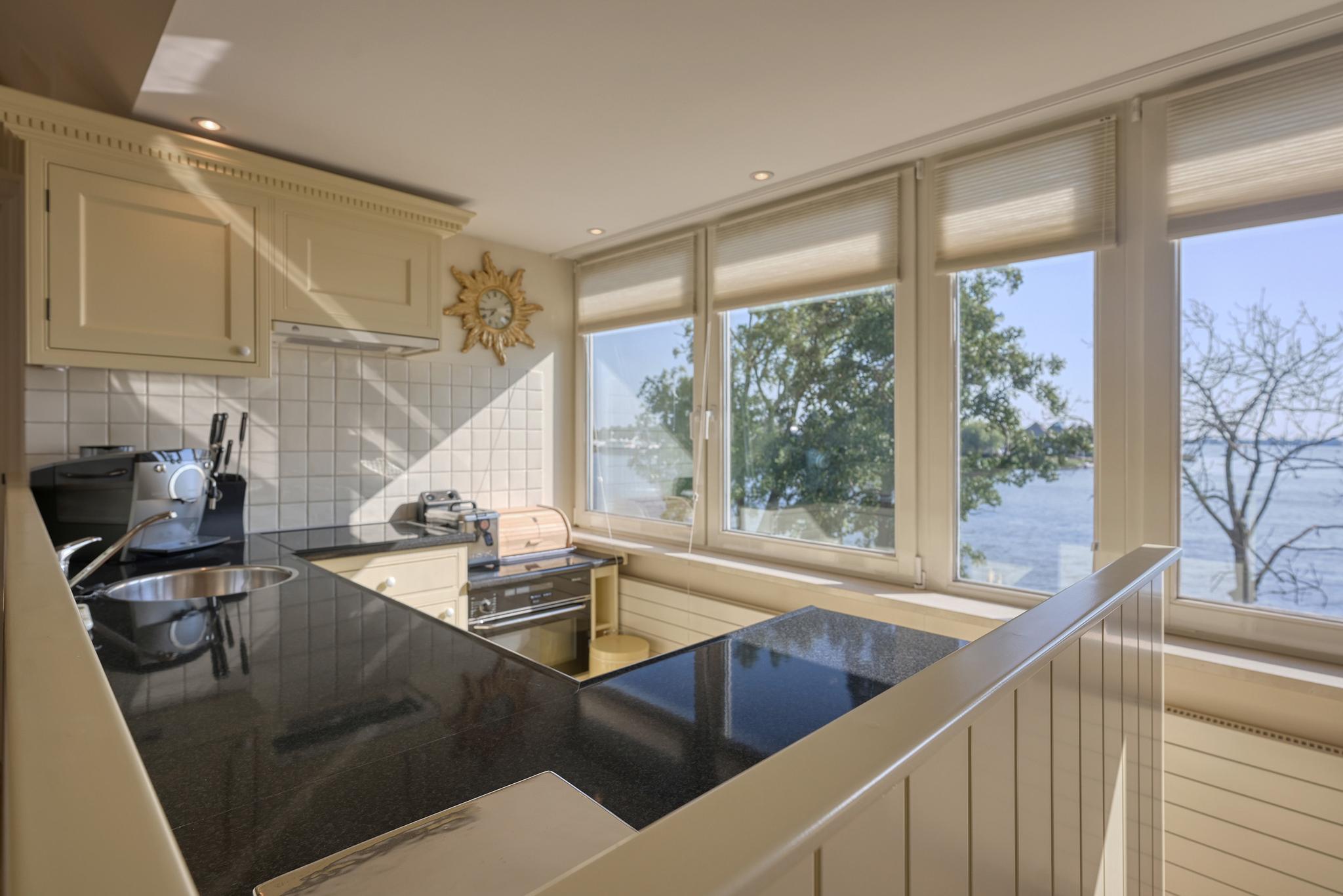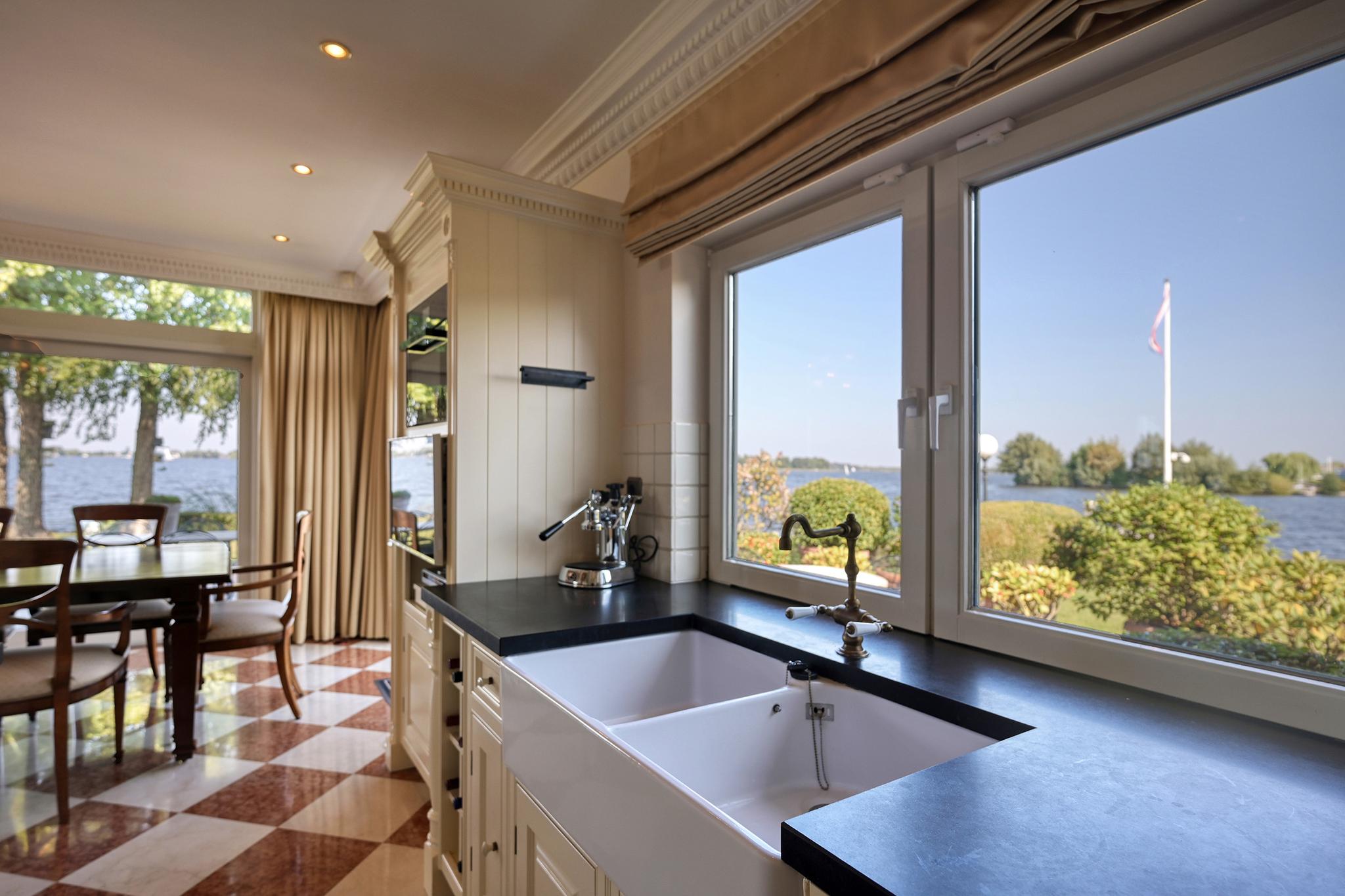Zeldzaam fraai uitzicht over de Loosdrechtse Plassen, door de grote raampartijen wordt binnen buiten en buiten binnen