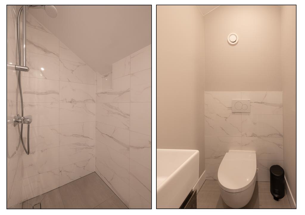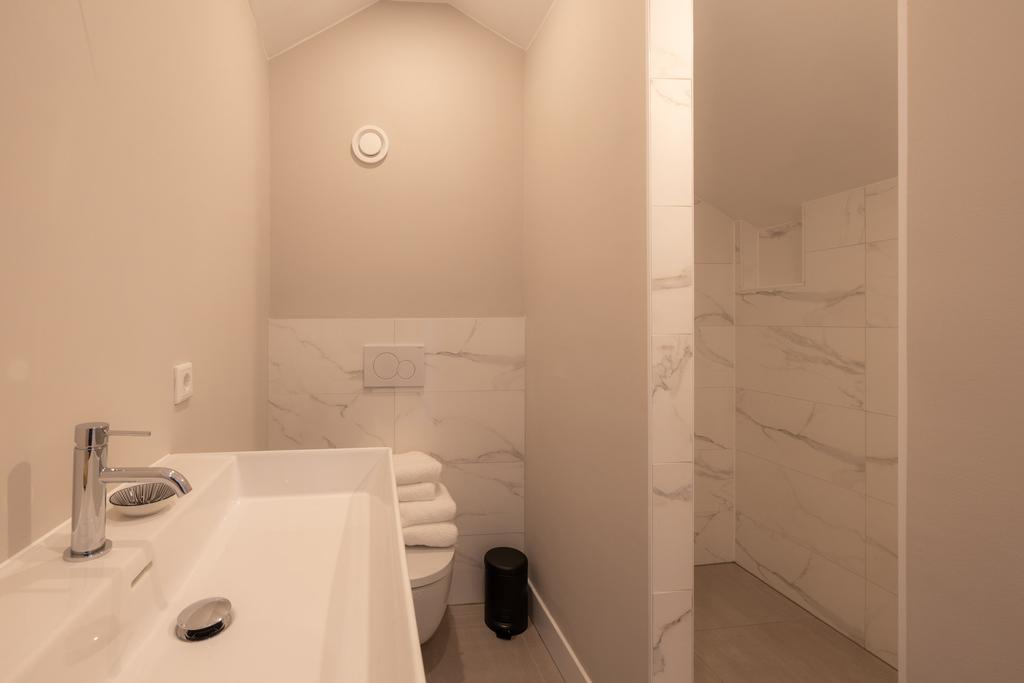 De verdieping beschikt over nog twee slaapkamers en een volledige badkamer voorzien van een inloopdouche, wastafel en toilet. De slaapkamer aan de straatzijde is zeer ruim en kan ook makkelijk door bijvoorbeeld twee kinderen worden gebruikt. Op de overloop bevindt zich nog een separate wasruimte.