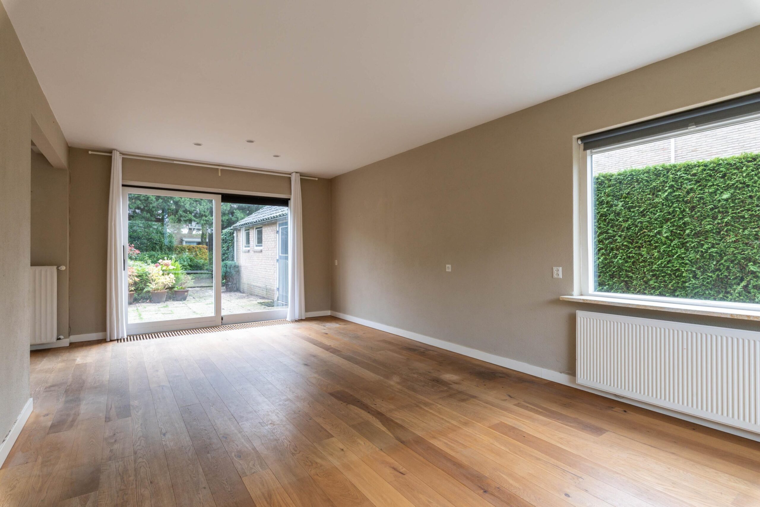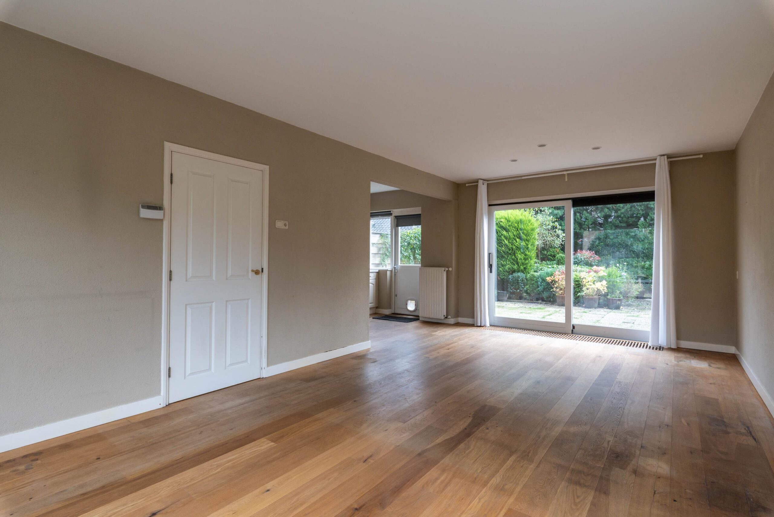 Via de grote schuifdeuren betreedt u het royale zonneterras met een gunstige ligging. Dankzij de diepe achtertuin bestaat er bovendien een ruime mogelijkheid tot uitbouw, een ideale plek om te genieten van rust en privacy.