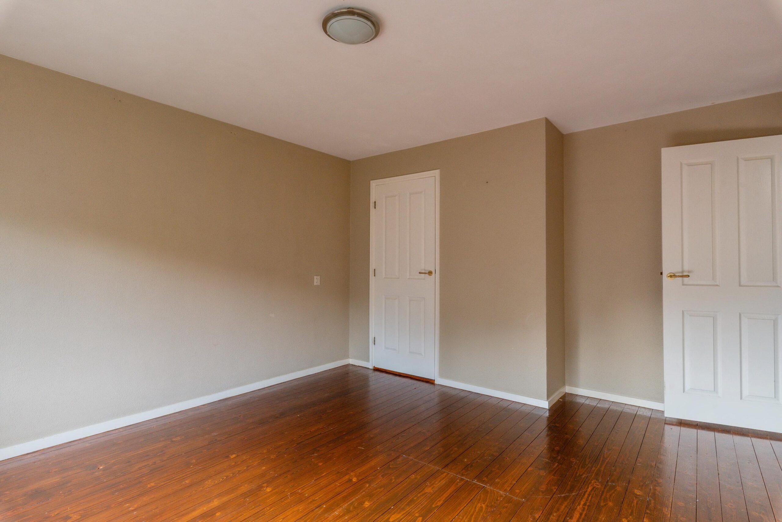 Ruime master bedroom met vaste kast (veel hang- en legruimte) en een tweede slaapkamer met eveneens een vaste kast. De gehele verdieping is afgewerkt met een stoere, gelakte houten vloer.