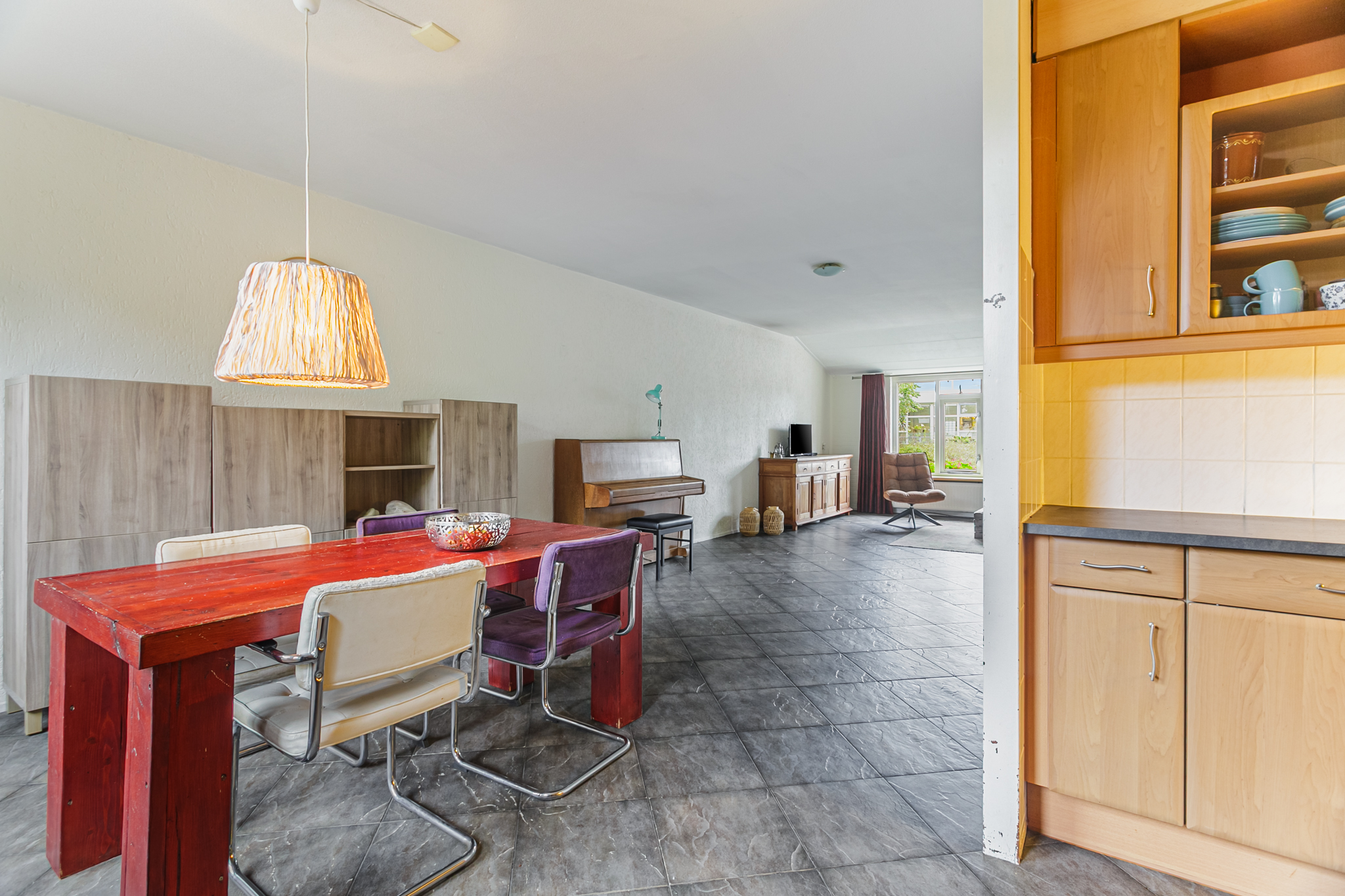 Indeling: entree, hal, toilet met fonteintje, ruime zonnige woonkamer met aan de tuinzijde de open keuken voorzien van diverse inbouwapparatuur, bijkeuken met toegangsdeur naar de tuin. In de tuin op het zuidwesten kan je de hele middag en avond in alle privacy genieten van de zon. De tuin is groen aangelegd en een heeft een achterom naar een hofje met speeltoestellen, dus echt ideaal voor kinderen.
