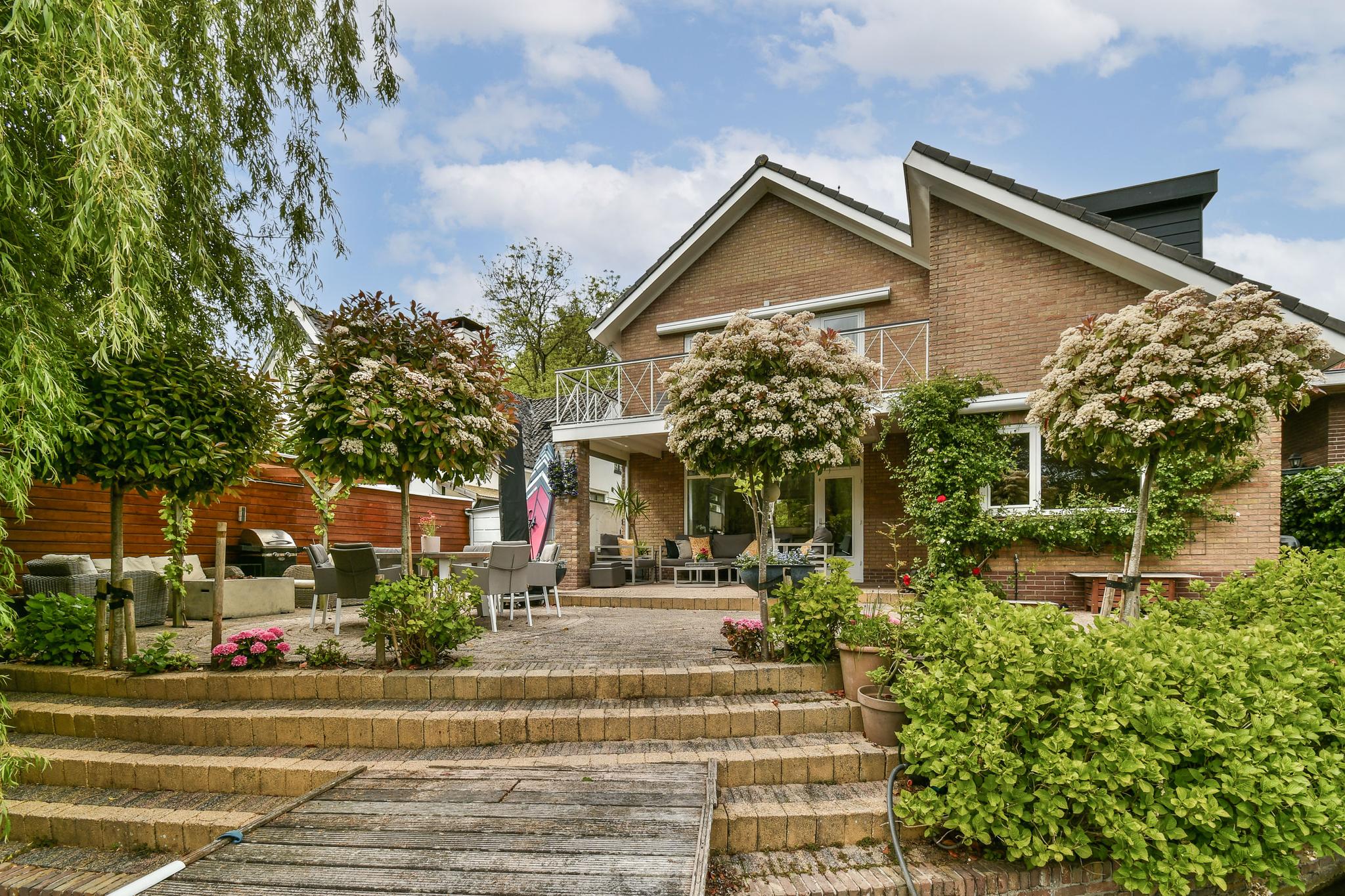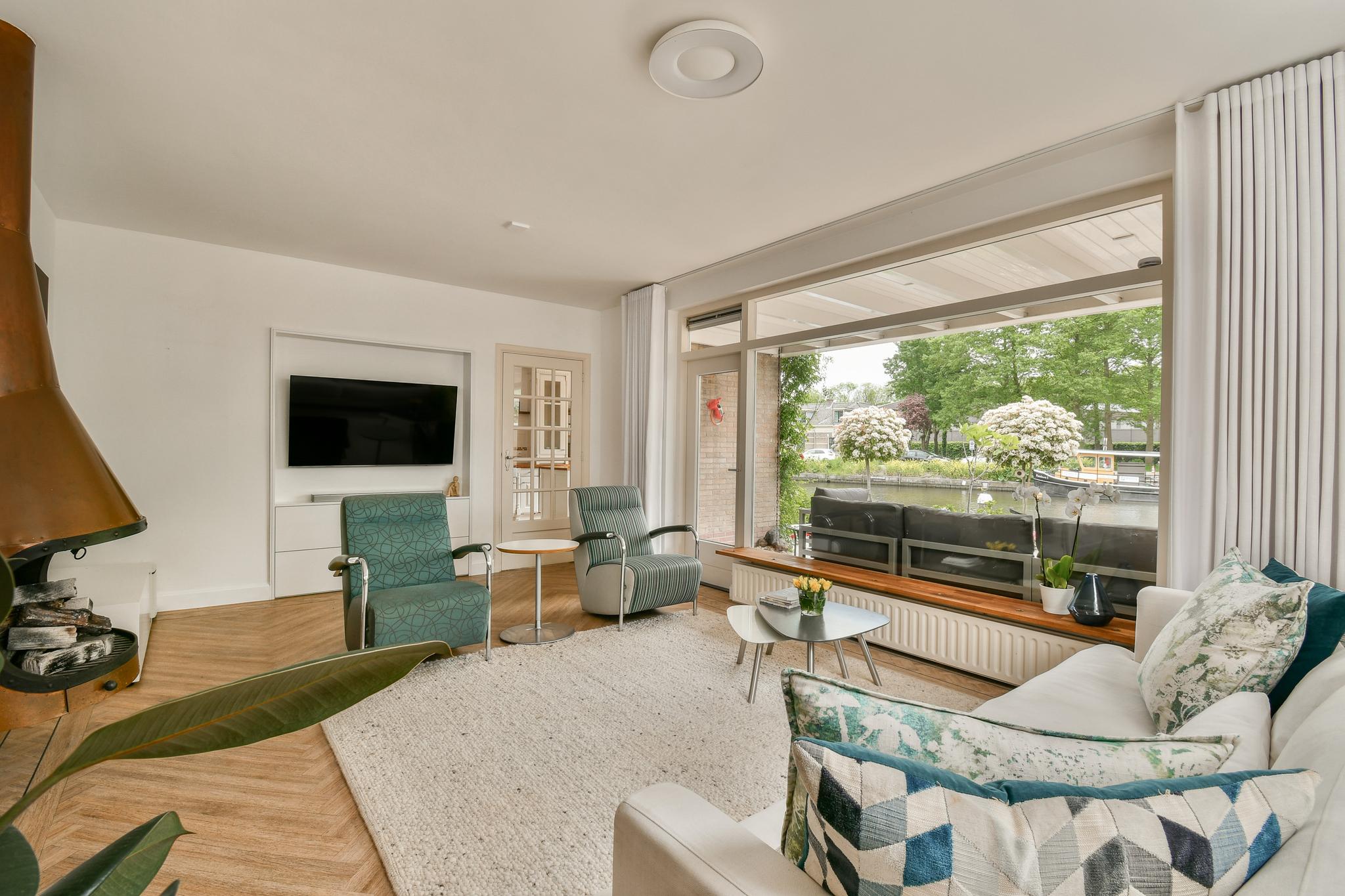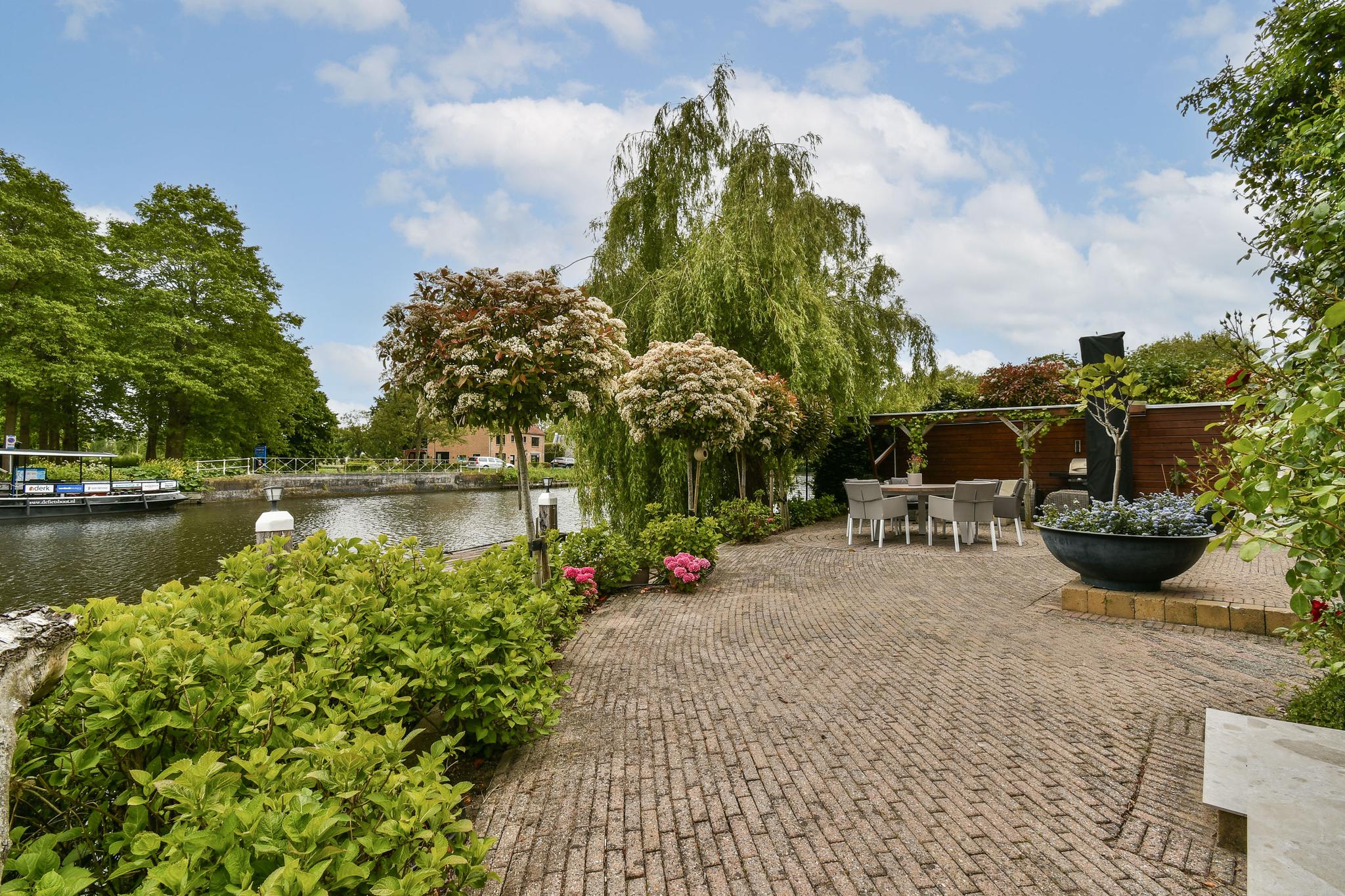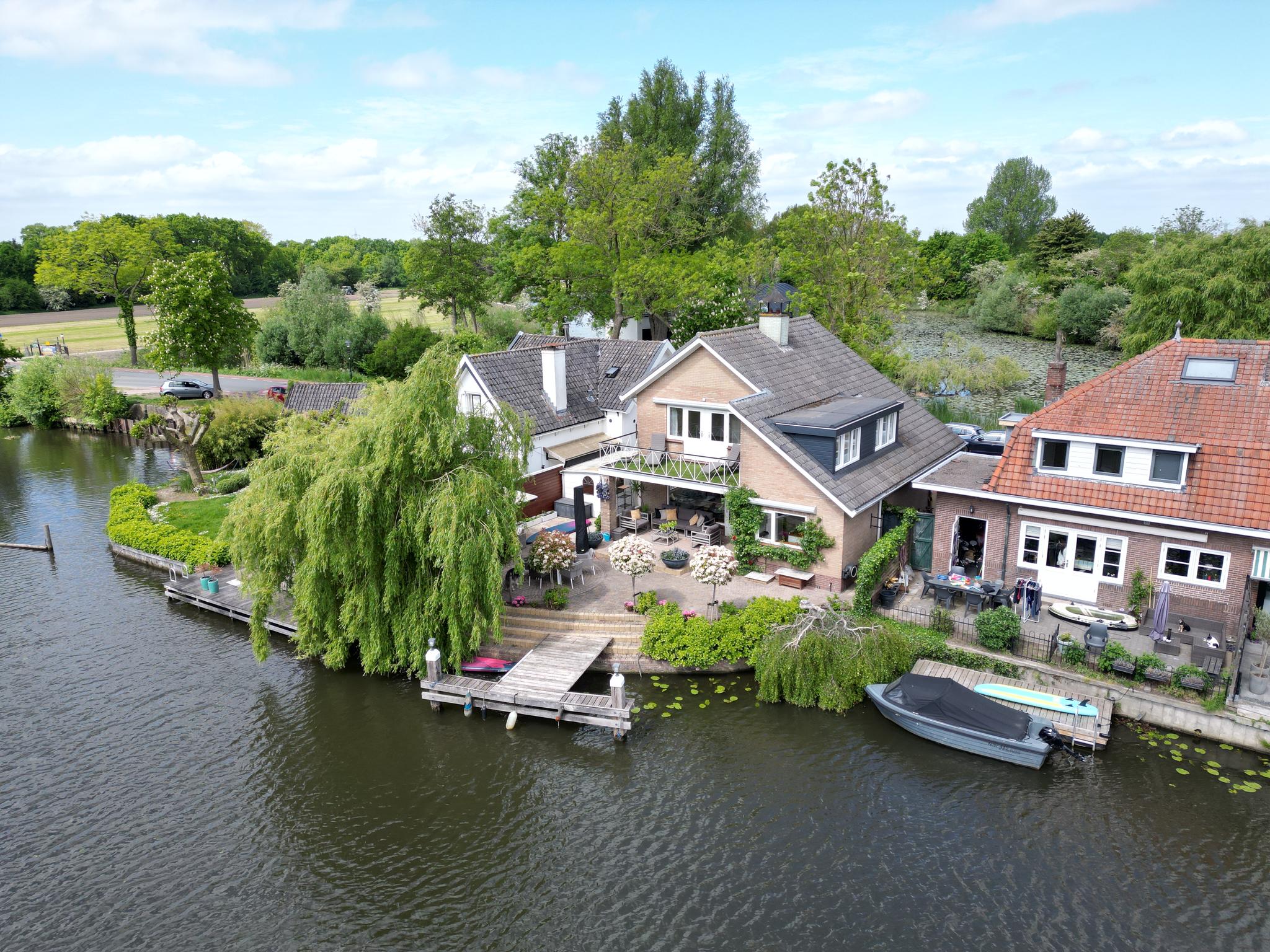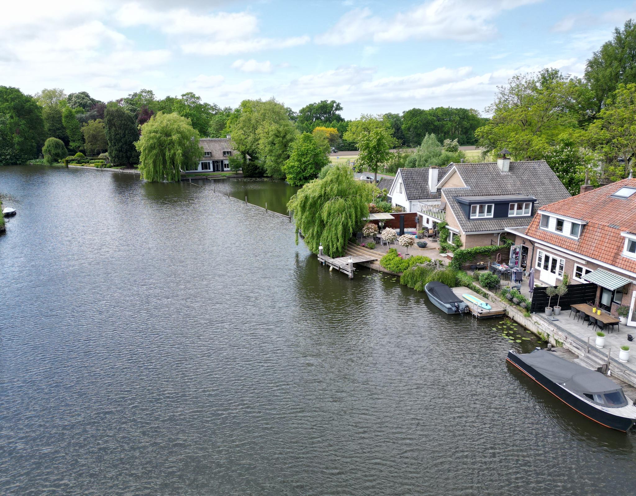 Tuin: De tuin ligt rechtstreeks aan de rivier en biedt een dagelijkse dosis schoonheid en rust. Vanuit de woonkamer en keuken loopt u naar de overdekte veranda in de achtertuin. In de tuin zijn diverse zitjes gecreëerd om op ieder moment van de dag optimaal te kunnen genieten van de zon en het water. Naast het huis staat een grote schuur. Een poort leidt weer naar de voorzijde van de woning. Vanaf de aanlegsteiger stap je zo de boot in voor een rondje varen over De Vecht en de vele aangrenzende wateren.