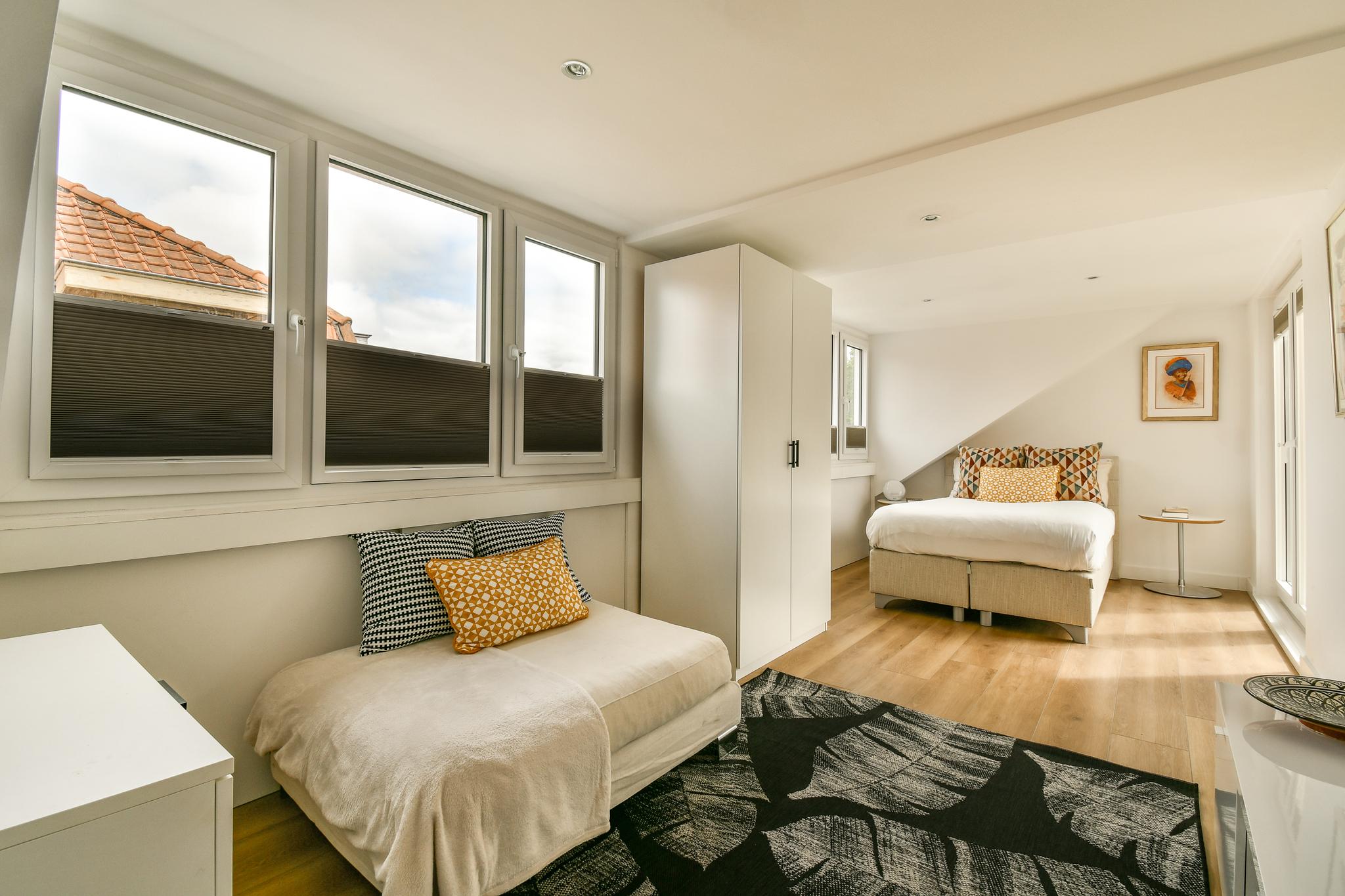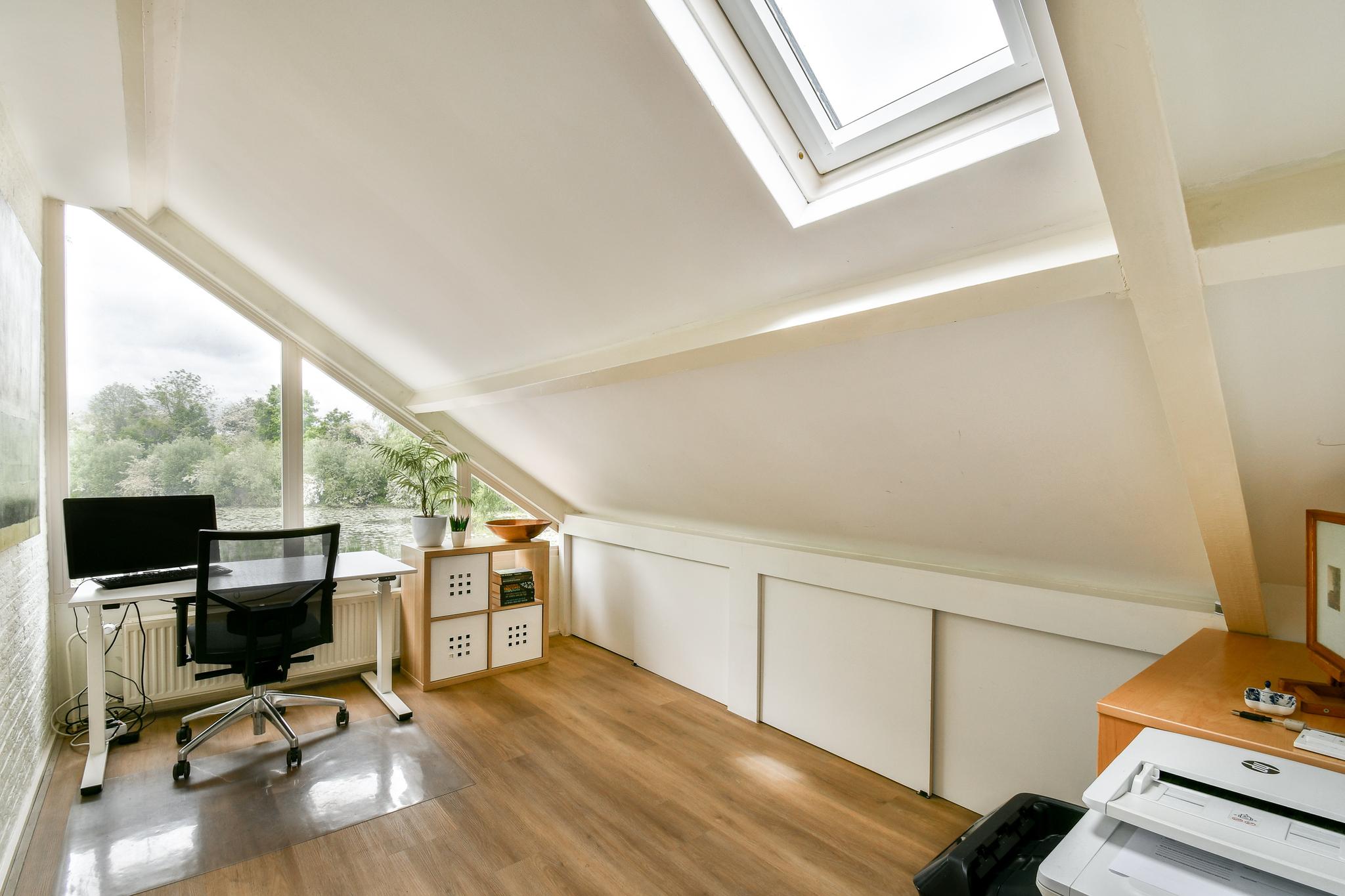 Tweede etage: Op de tweede etage bevinden zich nog twee kamers. Aan de achterzijde is een slaapkamer gerealiseerd, de voorzijde wordt gebruikt als 2de wekkamer met een vaste kastenwand. Beide kamers zijn voorzien van Velux dakramen met wederom mooie uitzichten over De Vecht. Op deze etage bevindt zich tevens de CV-installatie (Nefit, bj. 2019).