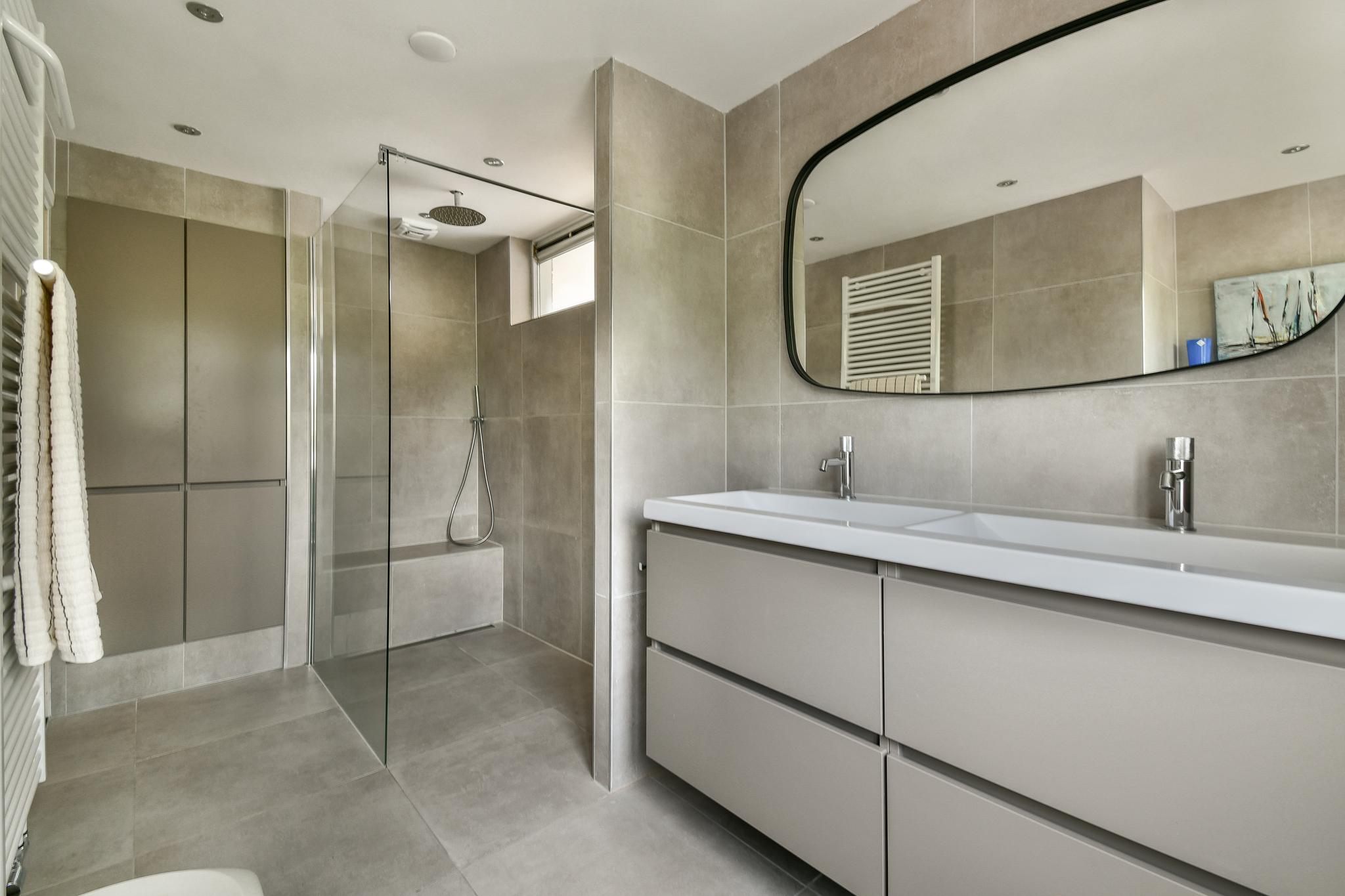 ruime inloopdouche, wastafelmeubel met dubbele wastafel en veel bergruimte en tweede toilet. De badkamer is in 2025 vernieuwd. De tweede slaapkamer ligt aan de straatzijde. De derde kamer (in gebruik als werkkamer) bevindt zich onder het schuine dak eveneens met een fraai uitzicht over de plas bij het Nieuwersluis Fort. Vanuit deze kamer is er toegang tot de vierde slaapkamer met een ruime dakkapel met toegang tot de dakterras en met idyllische uitzichten over De Vecht.