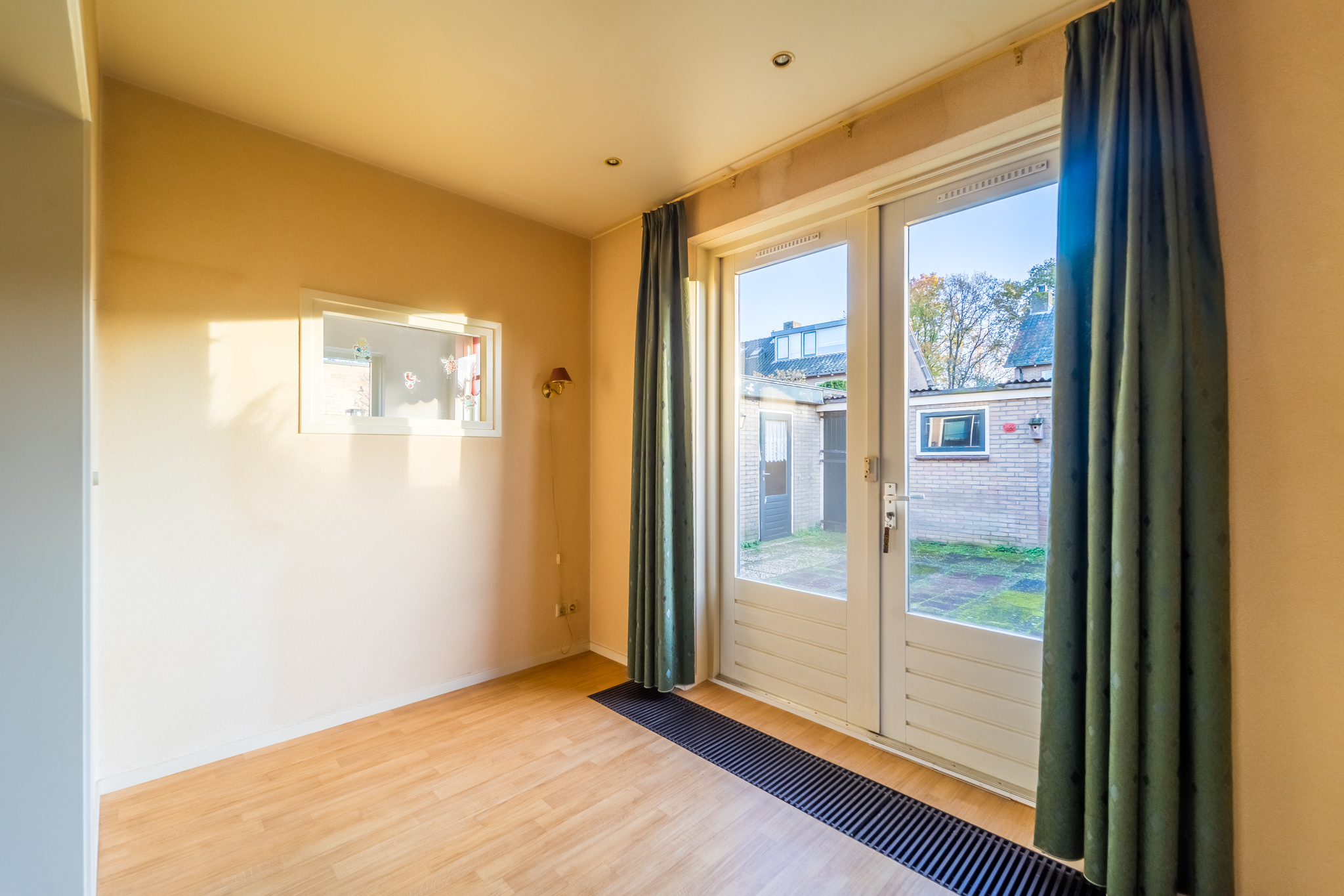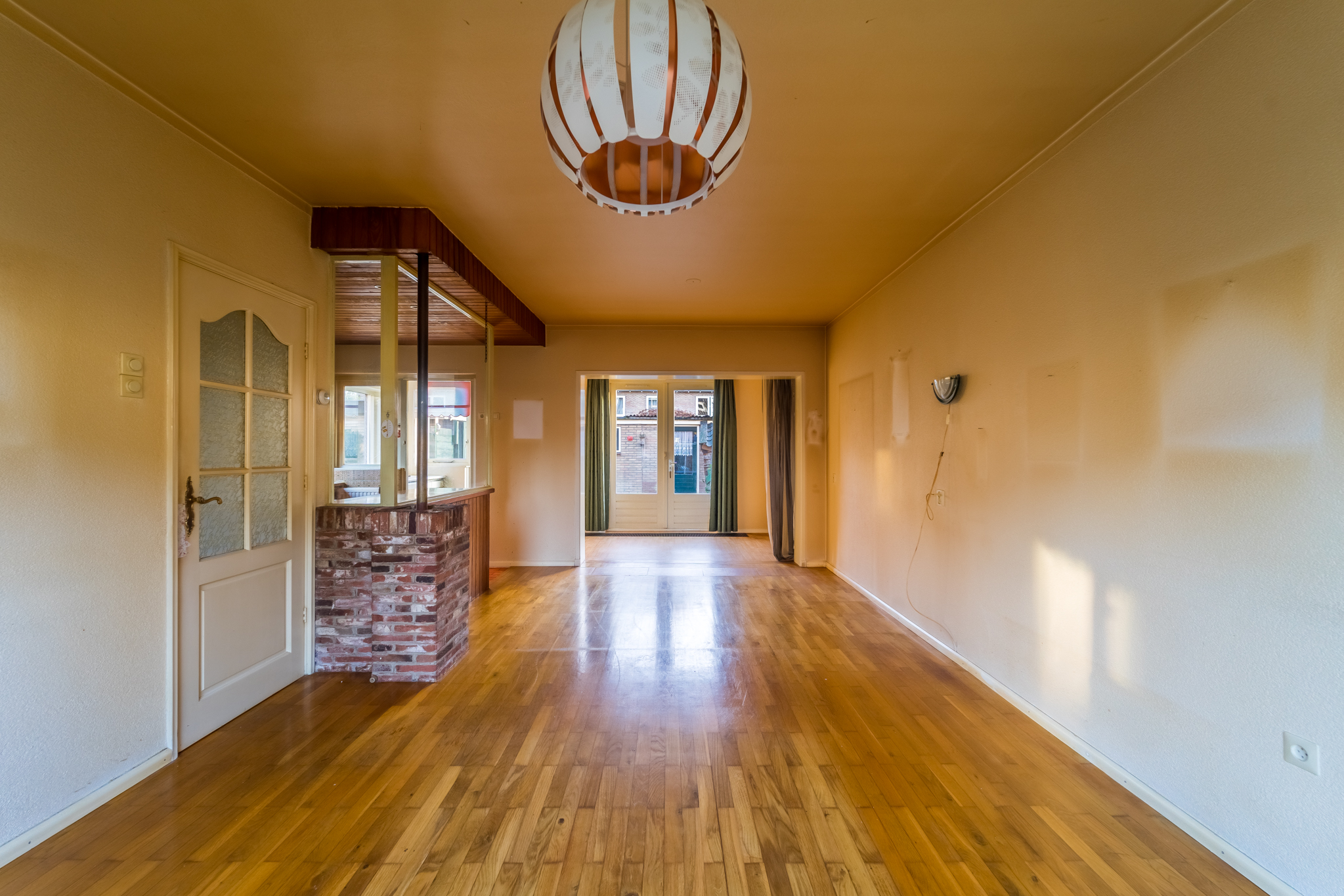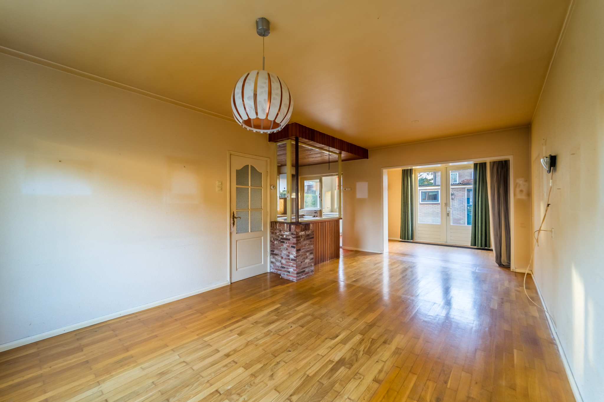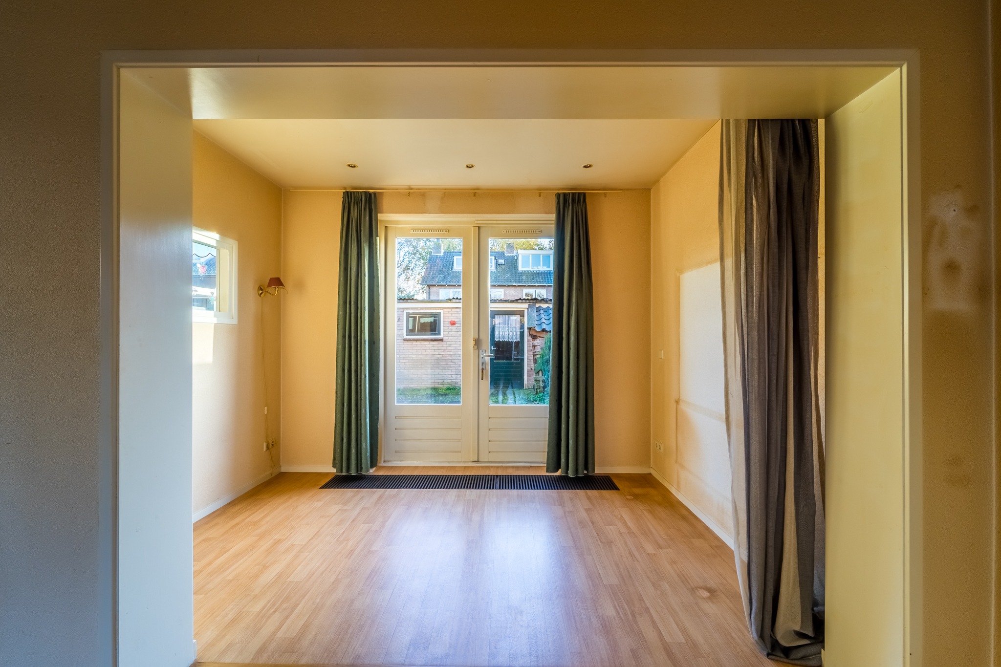 - Woonkamer met dubbele deuren naar de tuin;