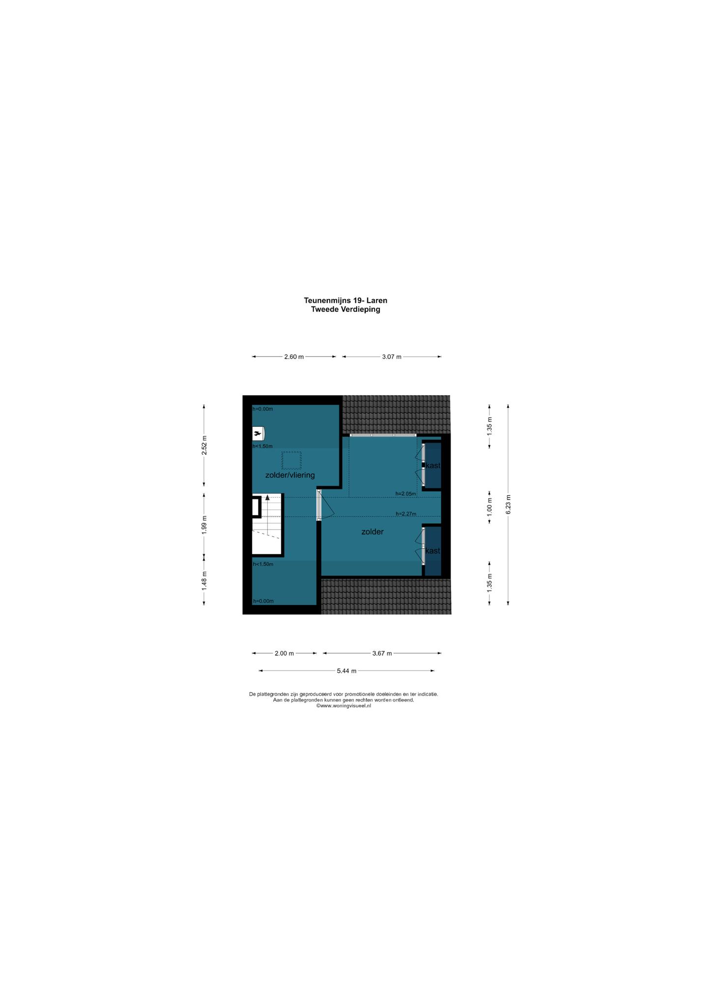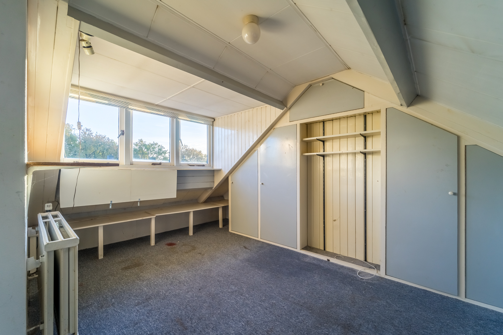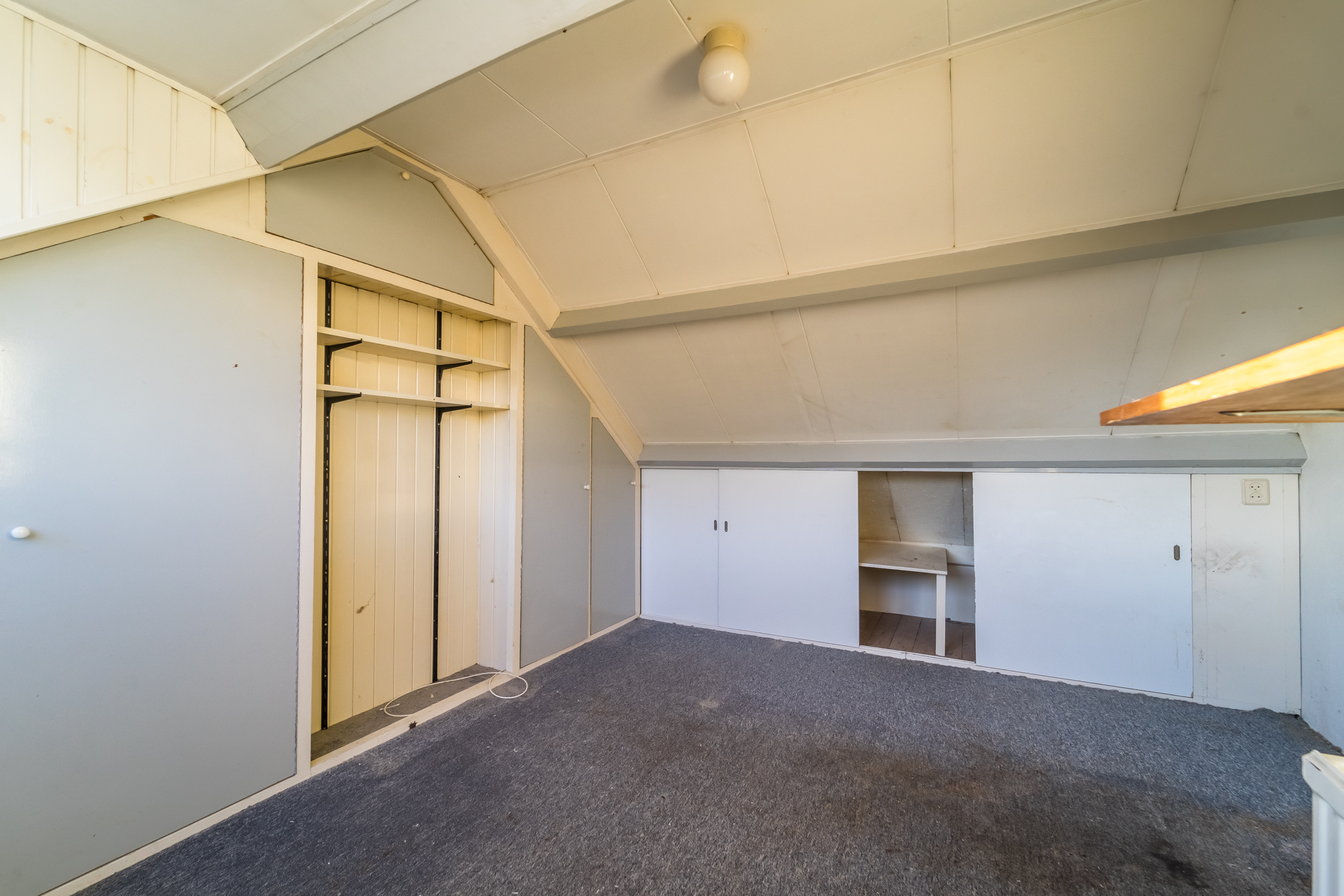 De zolder die middels een vaste trap bereikbaar is, heeft een dakkapel aan de tuinkant alsmede een wastafel. Op de voorzolder hangt de cv-combiketel en hier is ook veel bergruimte.