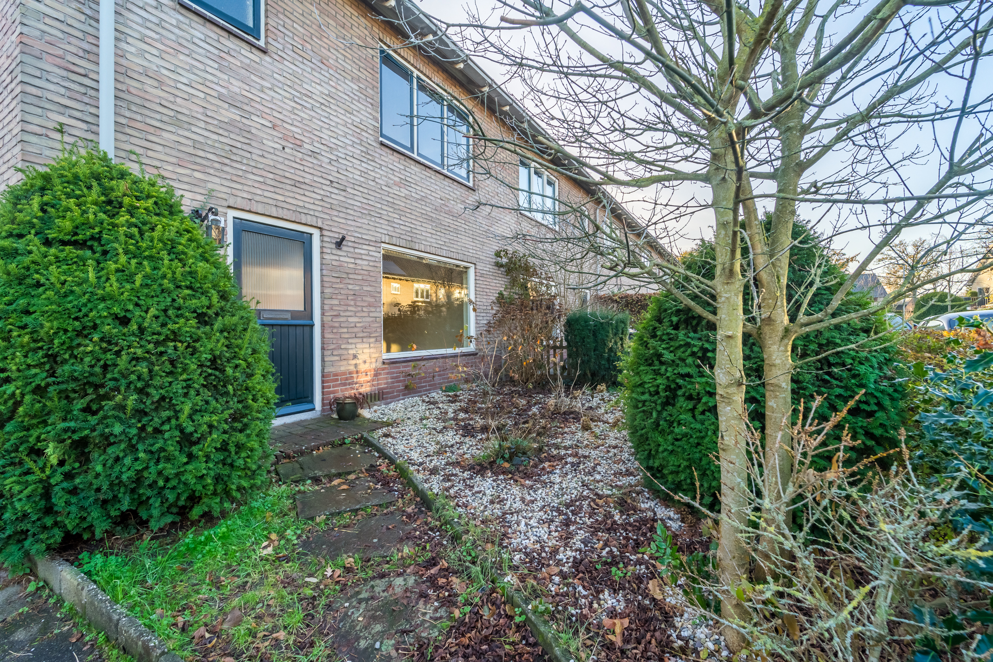 Aan de rand van het gezellige dorp Laren en tegen de Postiljonheide aan, staat deze uitgebouwde hoekwoning met stenen garage, oprit, twee schuren en zonnige voor- en achtertuin.