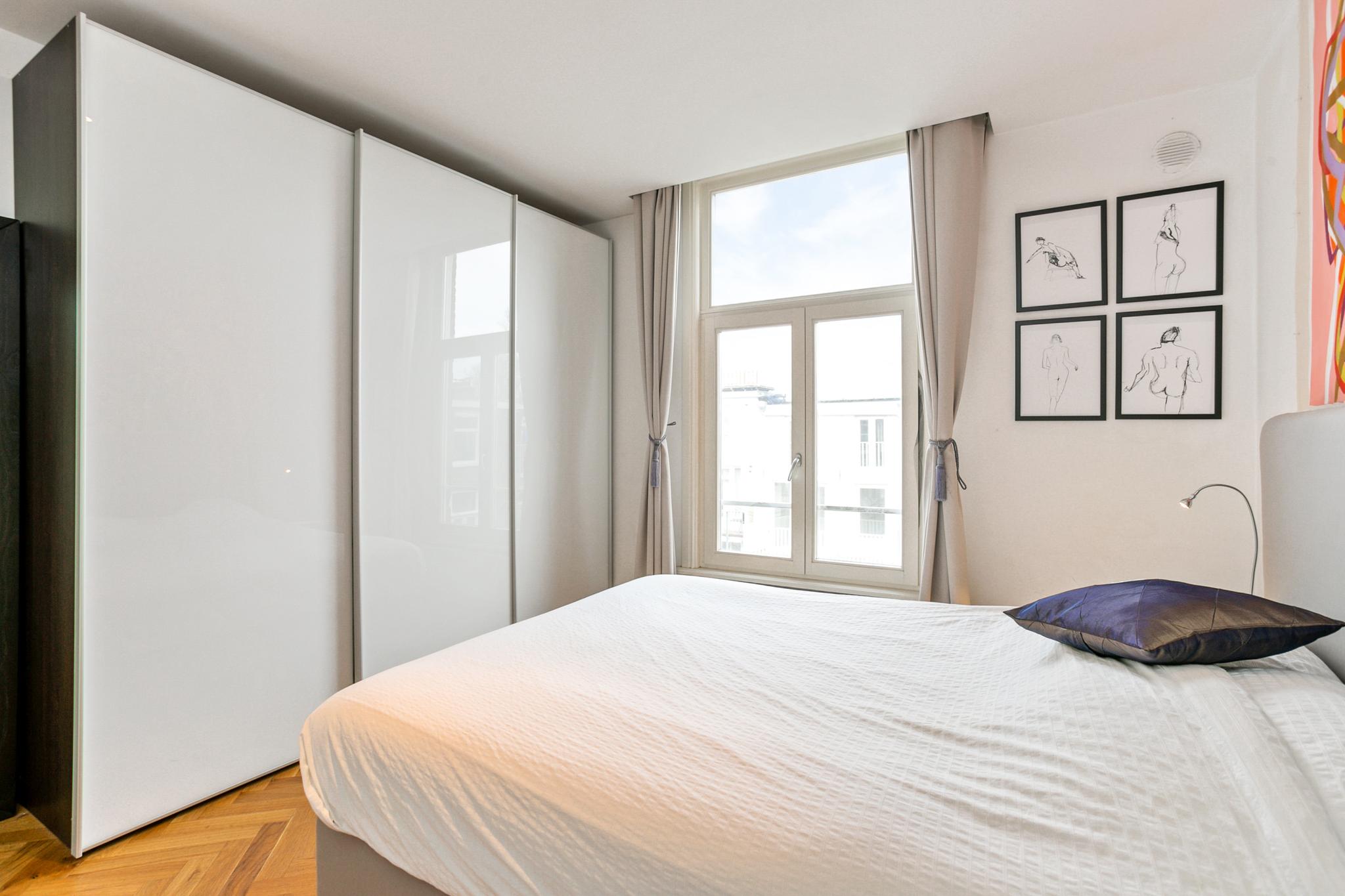 Aan de hal grenzen de twee slaapkamers, de badkamer en de separate WC. De badkamer is voorzien van een ruim ligbad en een modern wasmeubel met eronder plaats voor de wasmachine en droger. Aan de achterkant bevinden zich de master bedroom en tweede slaapkamer/werkkamer . Een absoluut hoogtepunt van deze woning is het ruime dakterras, comfortabel te bereiken via het dakhuis waar u op regenachtige dagen de kussens kunt bewaren. Hier heeft u een geweldig uitzicht over de Amsterdamse binnenstad, de Stadsschouwburg, het Rijksmuseum en het Vondelpark. Dit is de plaats waar u 's zomers alleen of borrelend met vrienden de avonden verblijft.