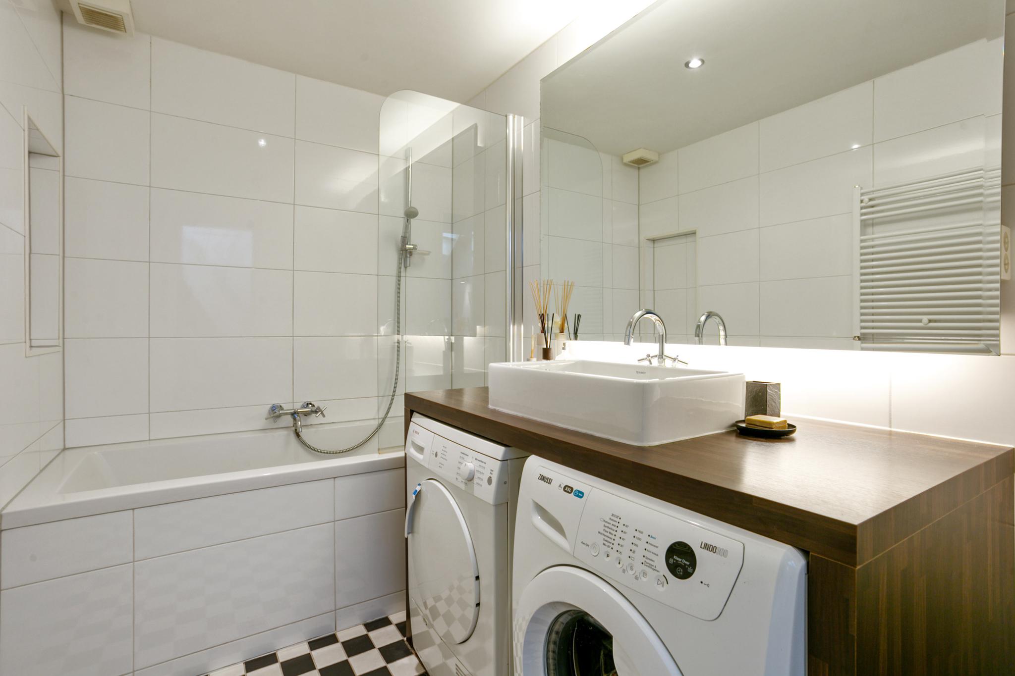 Adjacent to the hall are the two bedrooms, the bathroom and the separate toilet. The bathroom has a spacious bath and a modern washbasin with underneath space for the washing machine and dryer. In the back of the apartment you'll find the master bedroom and second bedroom/office. One of the highlights of this property is the delightful roof terrace, offering a private outdoor space where you can relax and enjoy the charming views of the neighborhood. Whether it's sipping your morning coffee or unwinding after a long day, the roof terrace provides a serene retreat right at your doorstep.