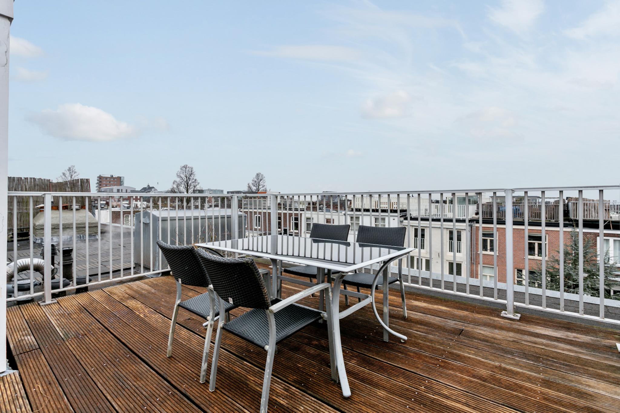 Lovely penthouse 2 bedroom apartment of 69 m² with entrance on the third floor and roof terrace with roof house in the most desirable and exclusive area of Oud West. This apartment exudes a rich atmosphere, from the architectural style to details such as herringbone parquet with trim, even in the stairwell.