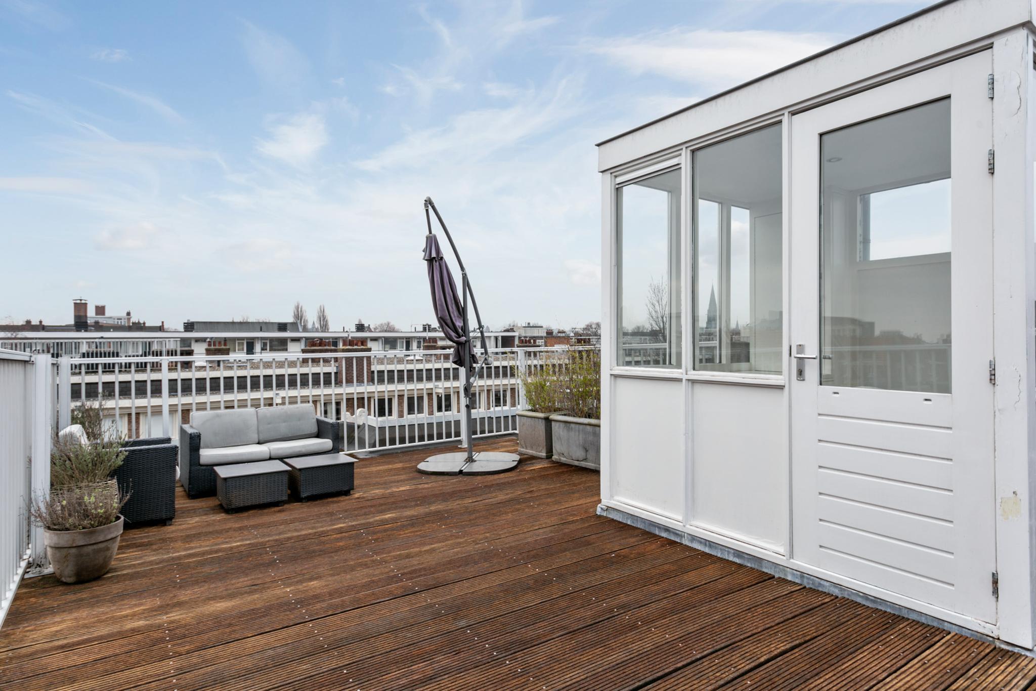 Heerlijk penthouse 3-kamer appartement van 69 m² met opgang op de derde verdieping en dakterras met dakhuis in de meest gewilde en exclusieve buurt van Oud West. Dit appartement ademt een rijke sfeer uit, van de bouwstijl tot aan details als visgraat parket met bies, zelfs in het trappenhuis.