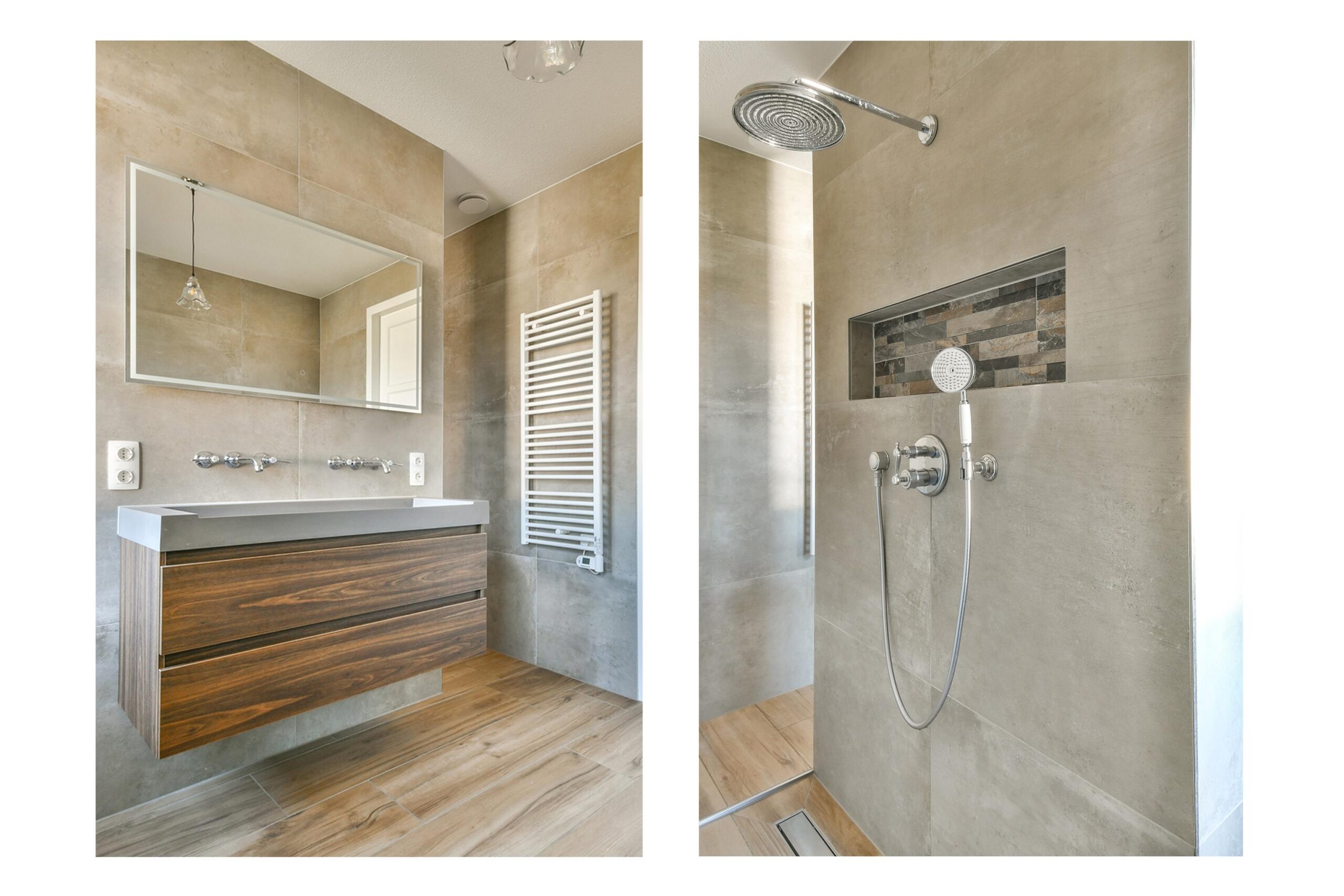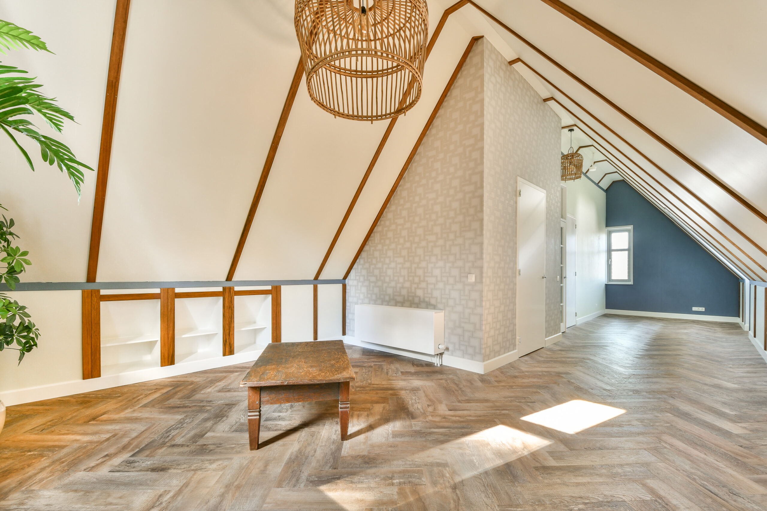 Op deze verdieping tref je één hele grote slaapkamer aan die eenvoudig in twee slaapkamers getransformeerd kan worden. Tevens hier de tweede badkamer die is uitgerust met een toilet, wastafelmeubel, een ligbad en een handdoeken radiator. Natuurlijk is er ook een technische ruimte waar onder andere de was/droog-aansluitingen aanwezig zijn. Achter de knieschotten bevindt zich veel bergruimte.